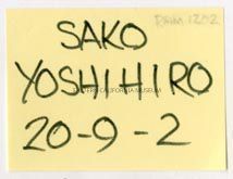 Handwritten label that says, "Sako Yoshihiro 20-9-2."