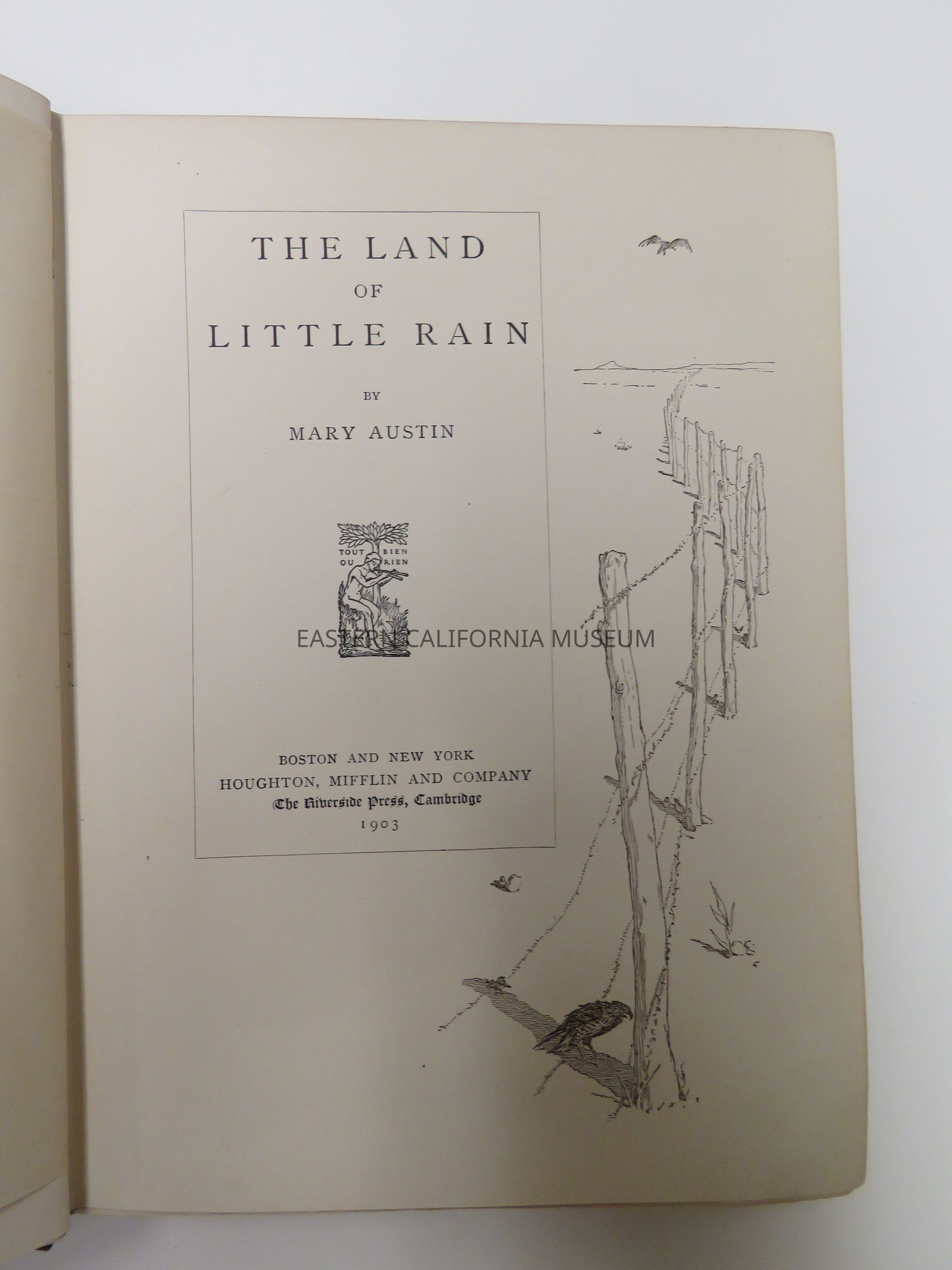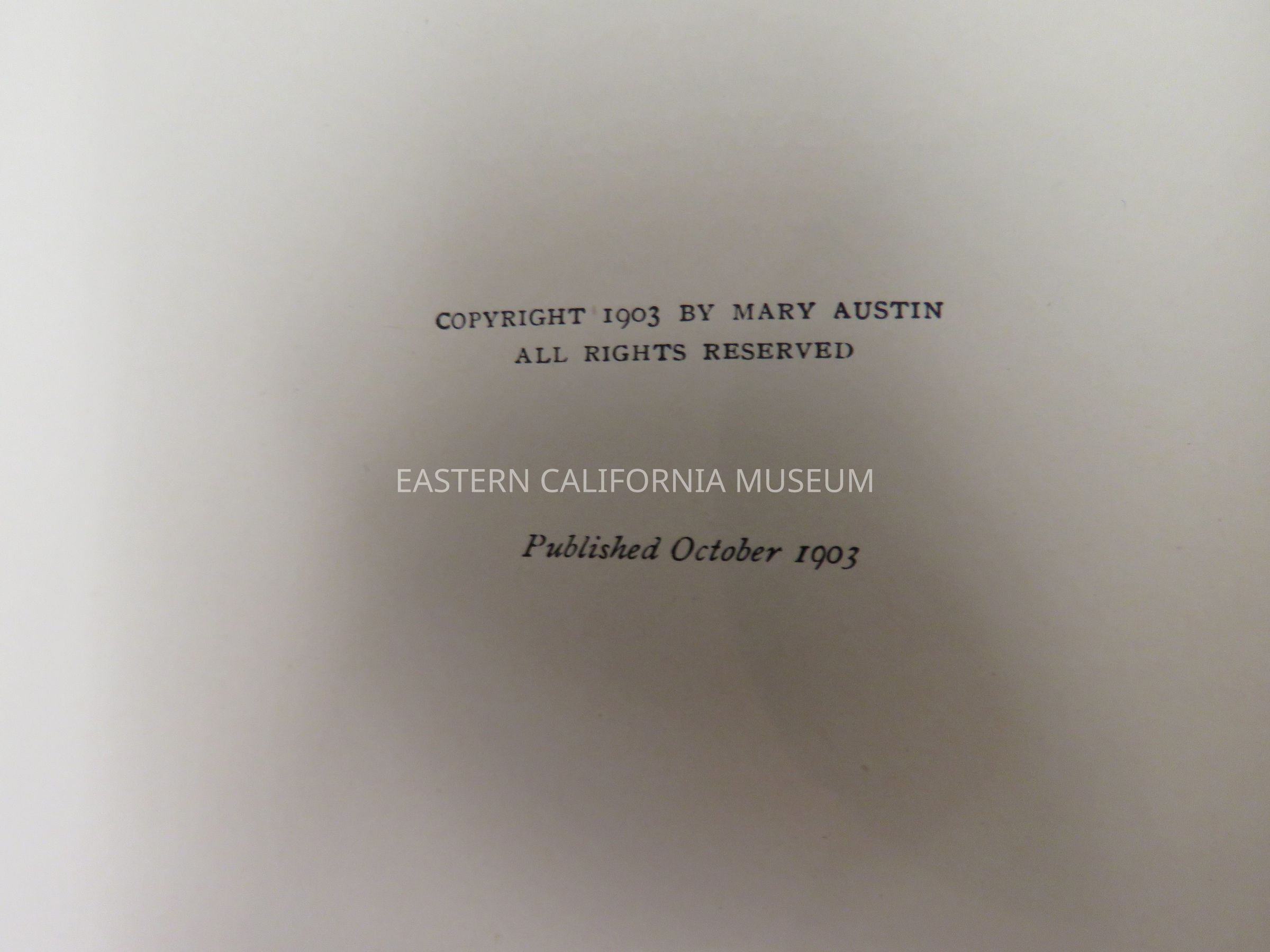 "Land of Little Rain" is inscribed on front flyleaf with "Loving Christmas greetings from Maury and Maude, Christmas 1903."