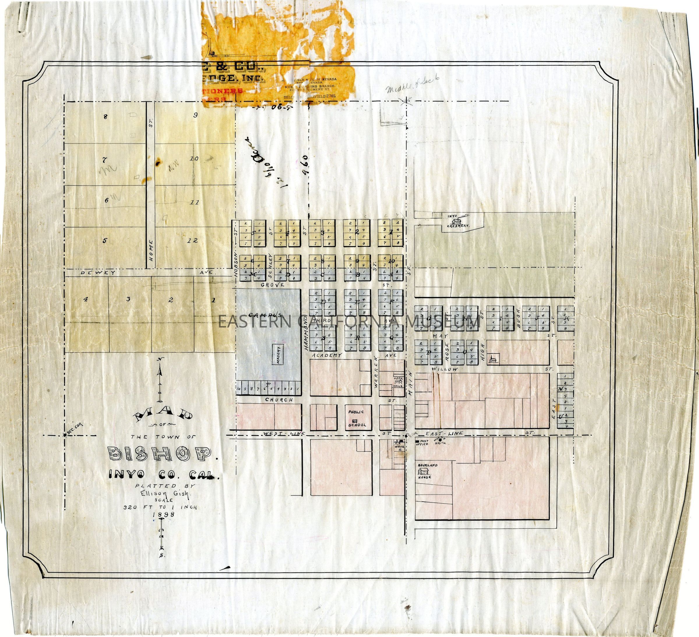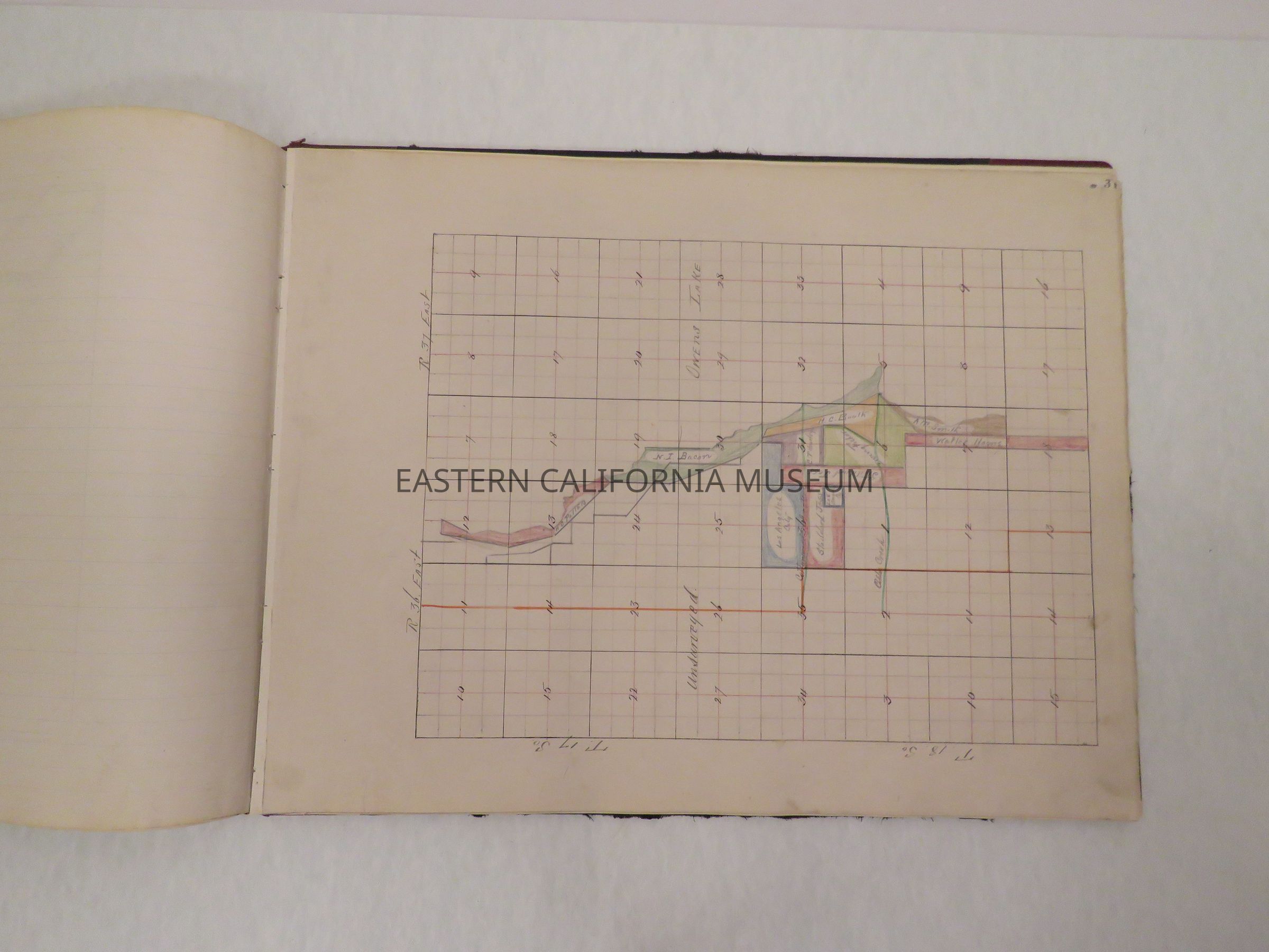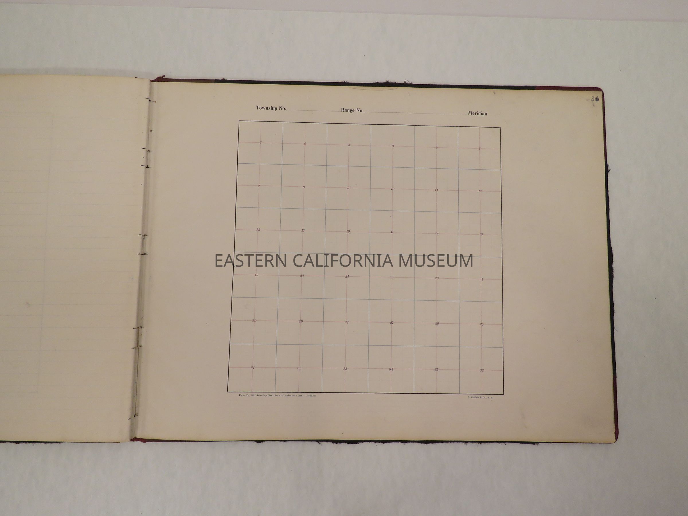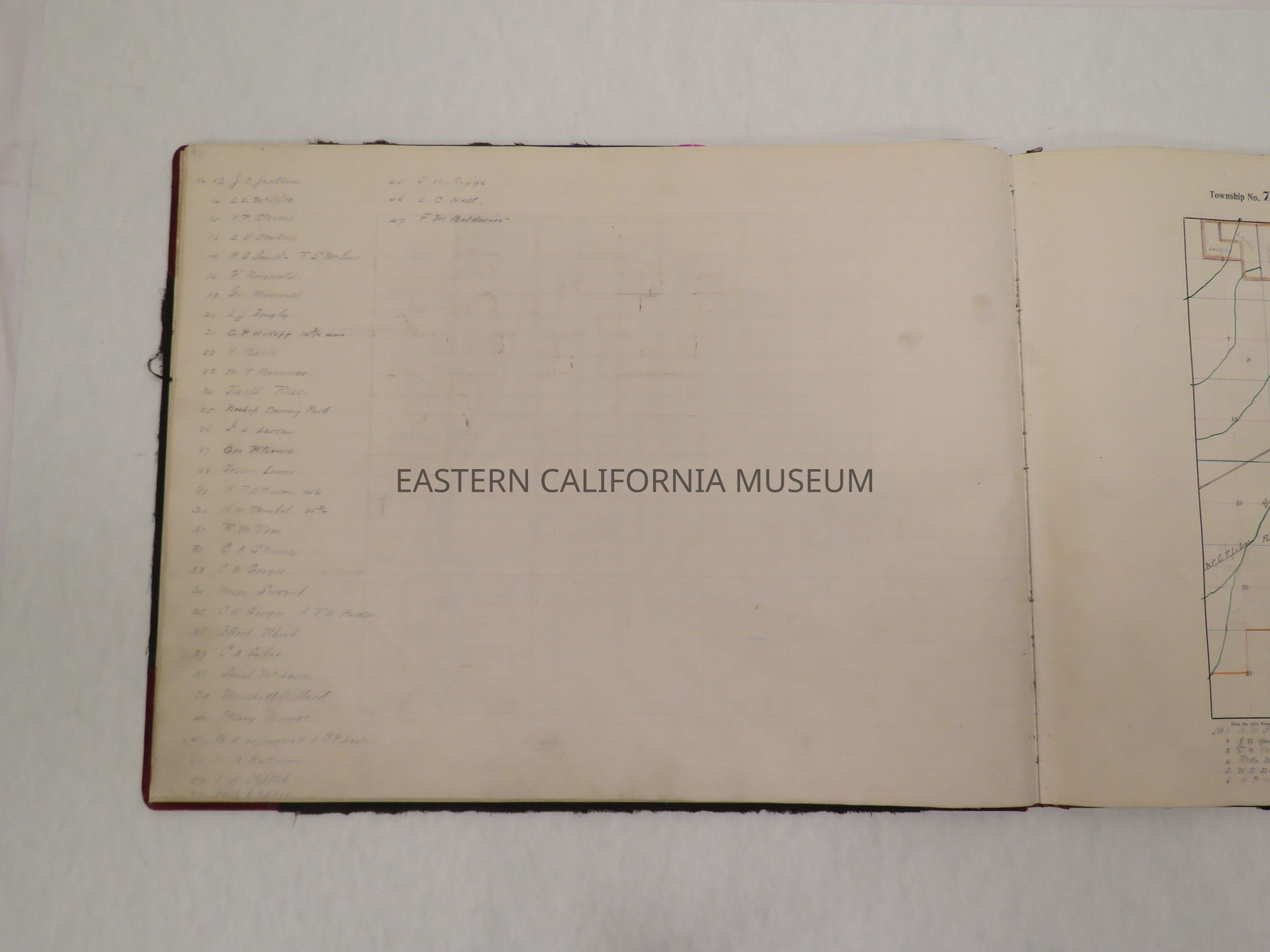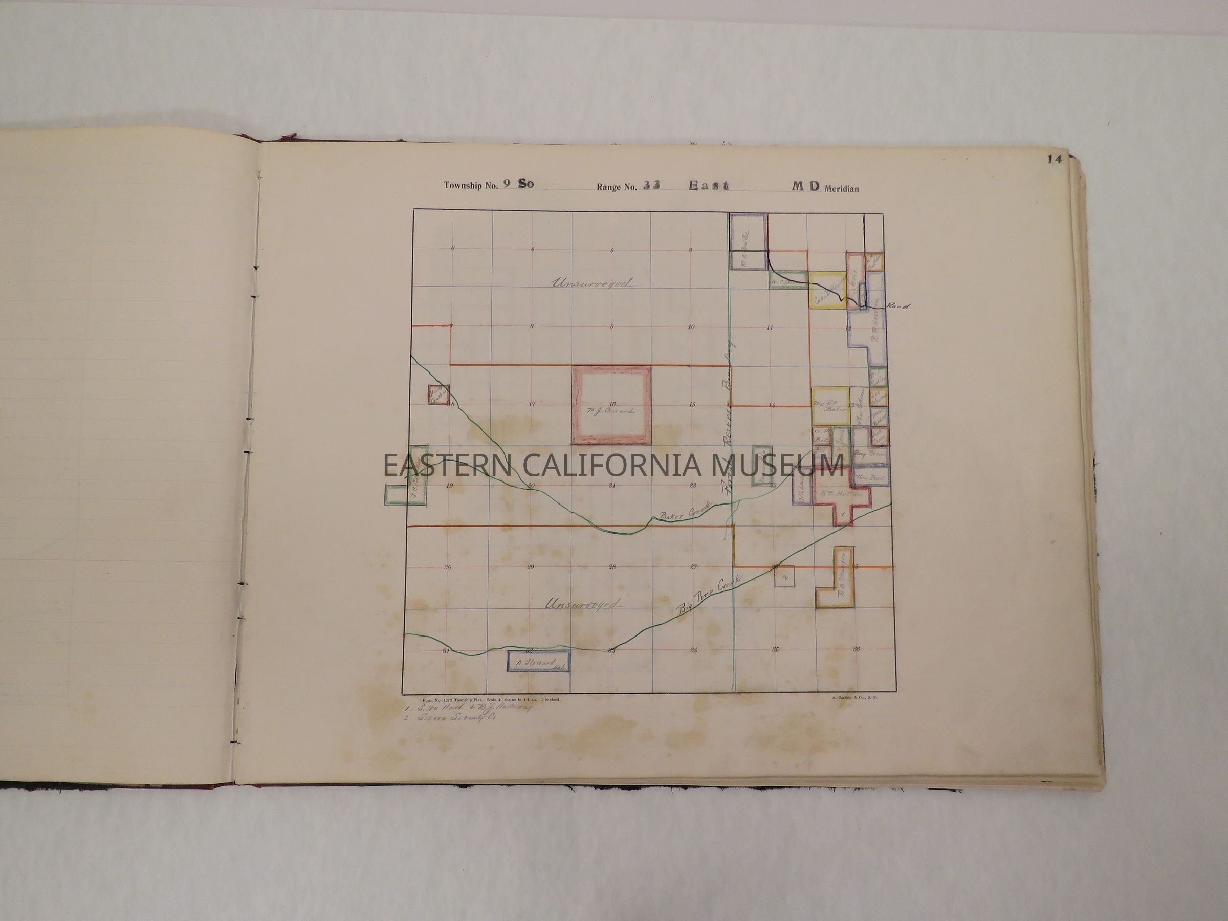 Bound plat map book showing land ownership from Bishop to Olancha and Keeler, c.1920s (there are many City of Los Angeles holdings). Inside front cover is written "Plat Book 3."