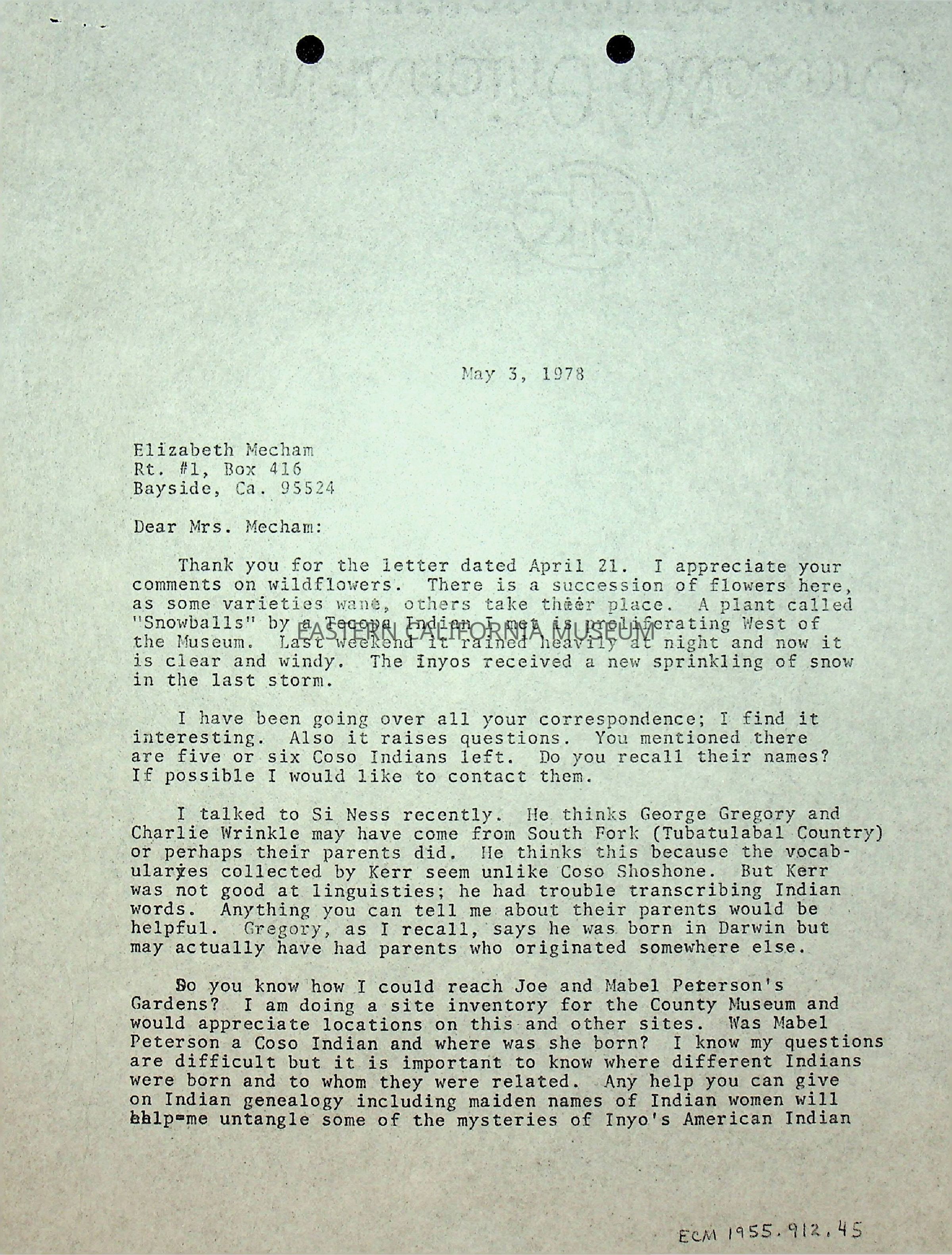 Two page, single sided typewritten letter from Charles Irwin to Elizabeth L. Mecham on 05/03/1978.