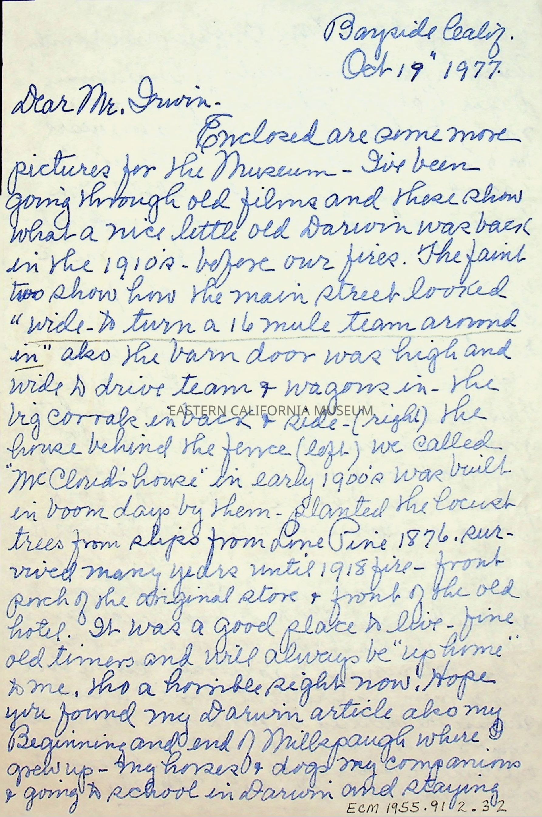 One page, double sided letter from Elizabeth L. Mecham to [Charles] Irwin on 10/17/1977.