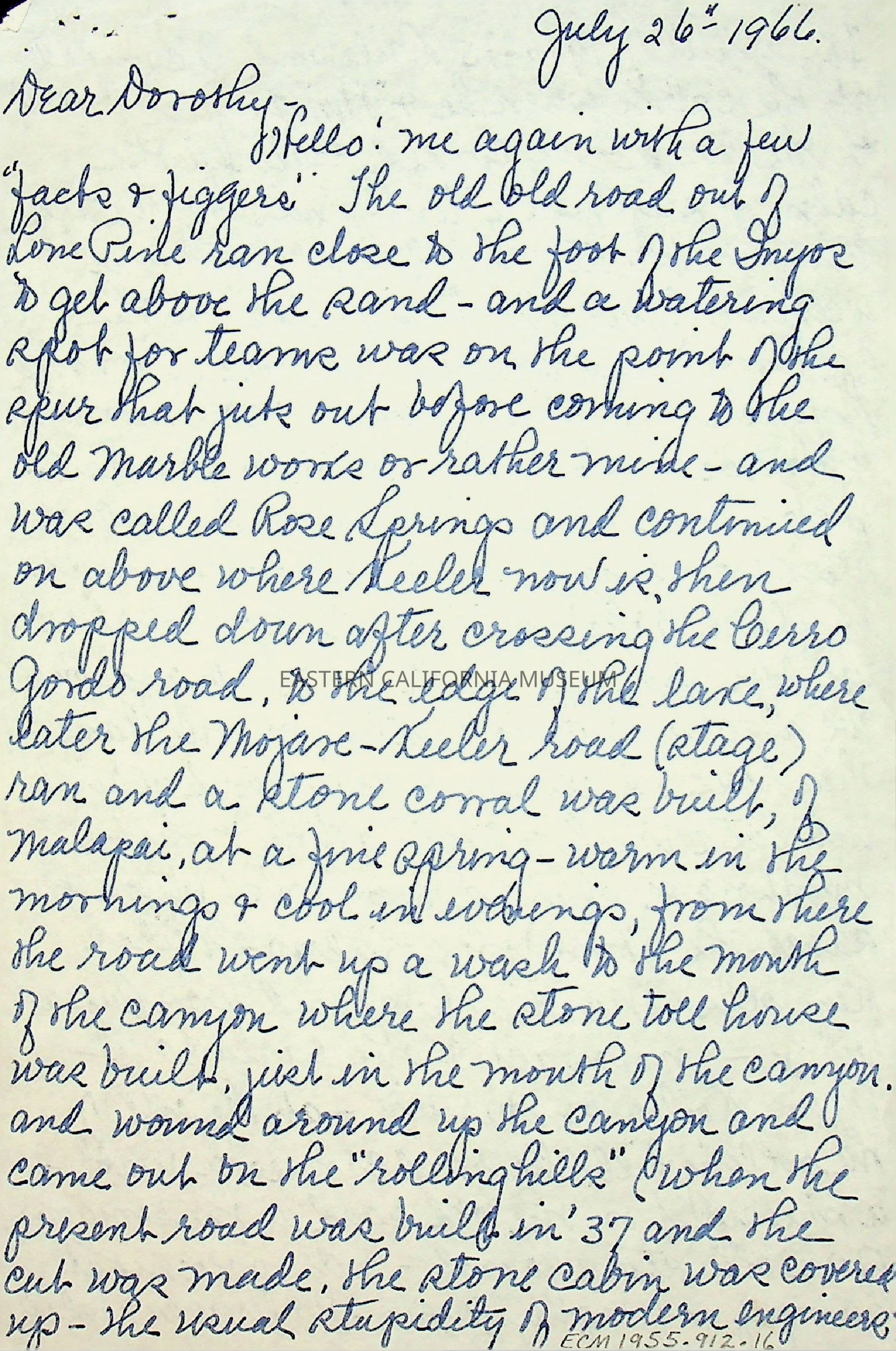 Five page, double sided letter from Elizabeth L. Mecham to Dorothy [Cragen] on 07/26/1966.