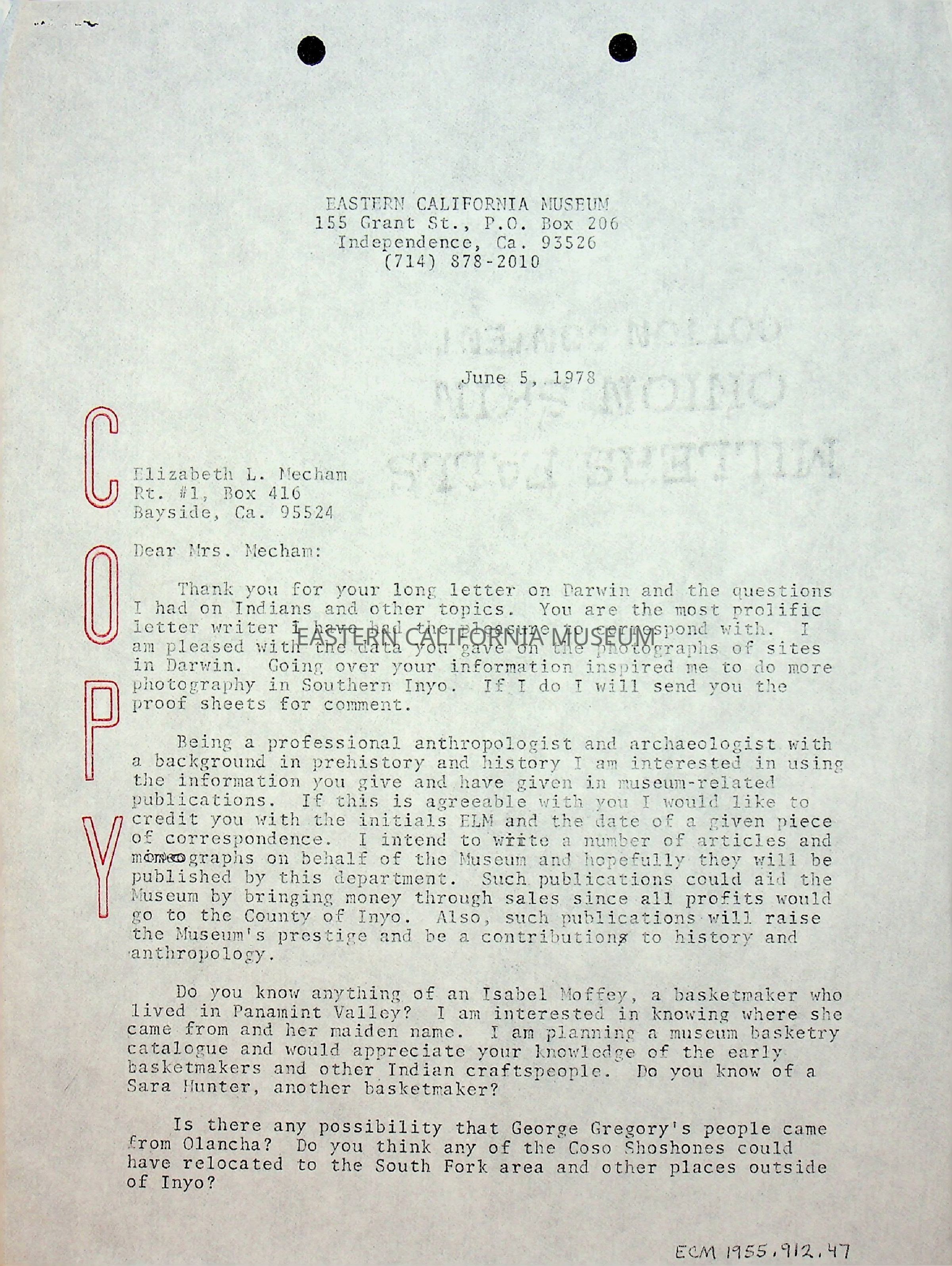 Two page, single sided typewritten letter from Charles Irwin to Elizabeth L. Mecham on 06/05/1978.