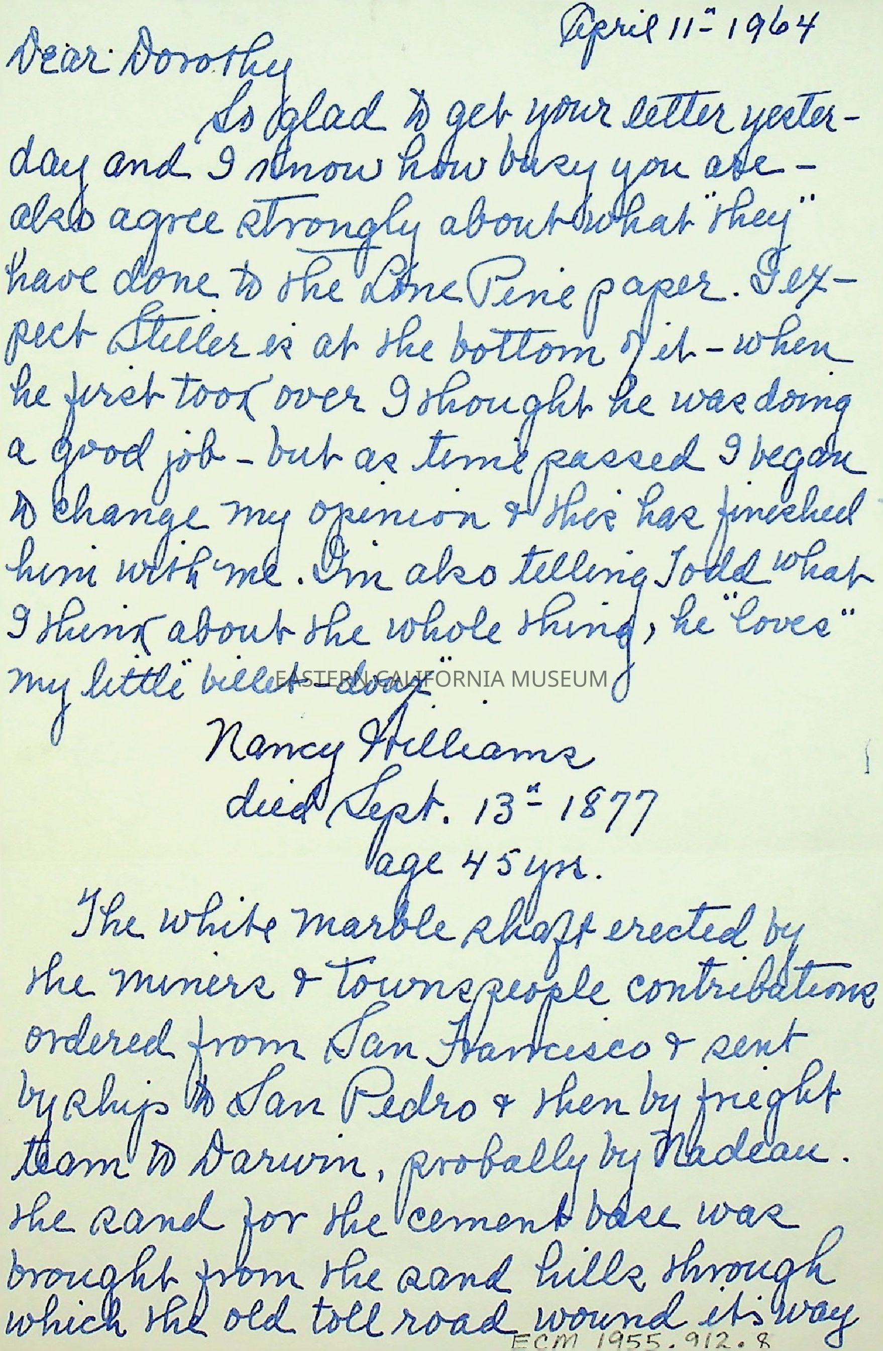 Five page, double sided letter from Elizabeth L. Mecham to Dorothy [Cragen] on 04/11/1964.