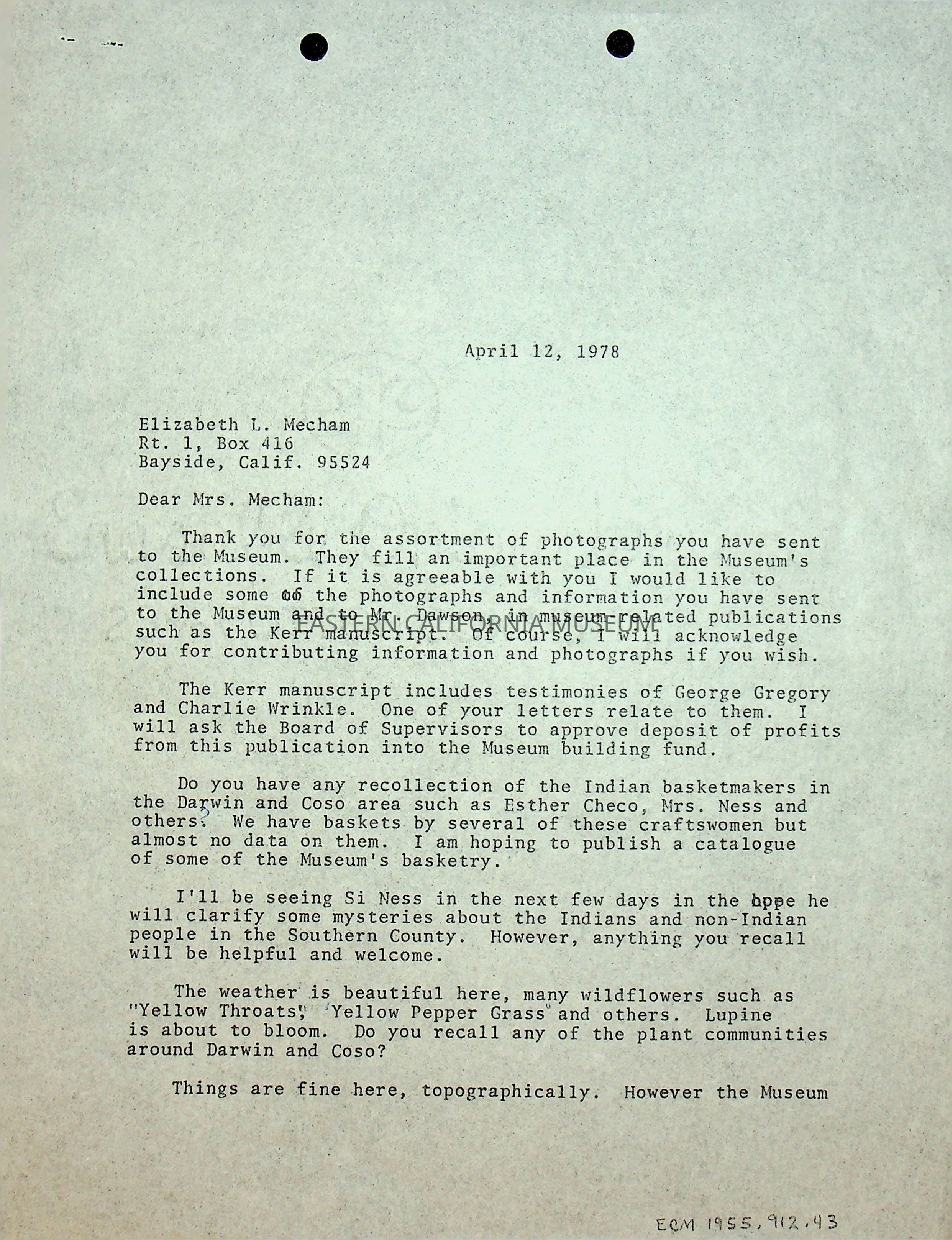 Two page, single sided typewritten letter from Charles Irwin to Elizabeth L. Mecham on 04/12/1978.