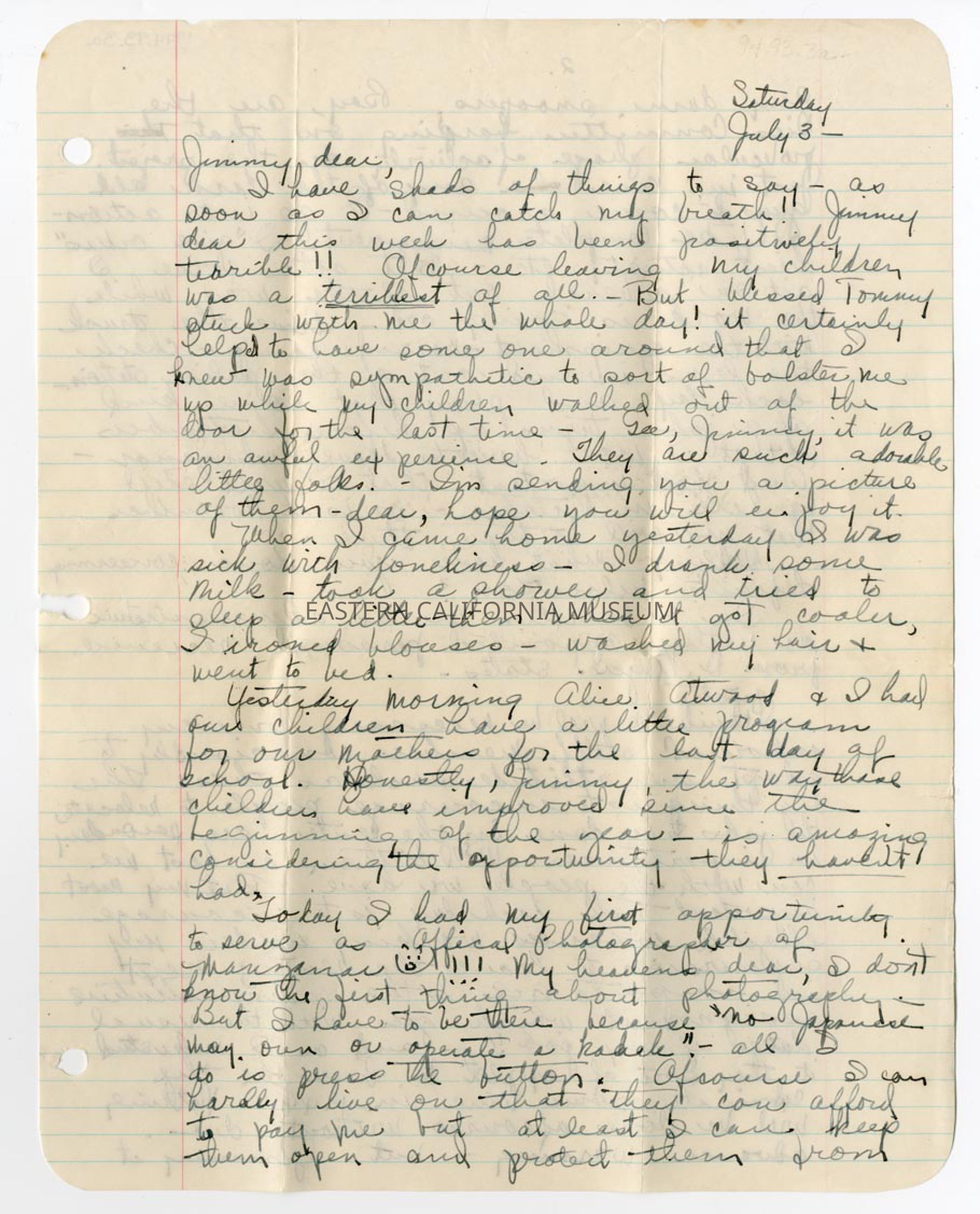 Letter from Eve Beekman to Jimmy Fukuhara, July 3, 1943, with envelope postmarked Manzanar.