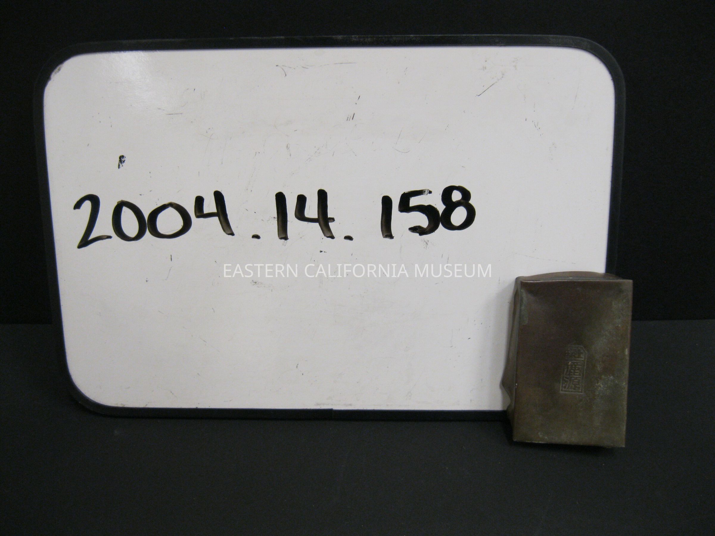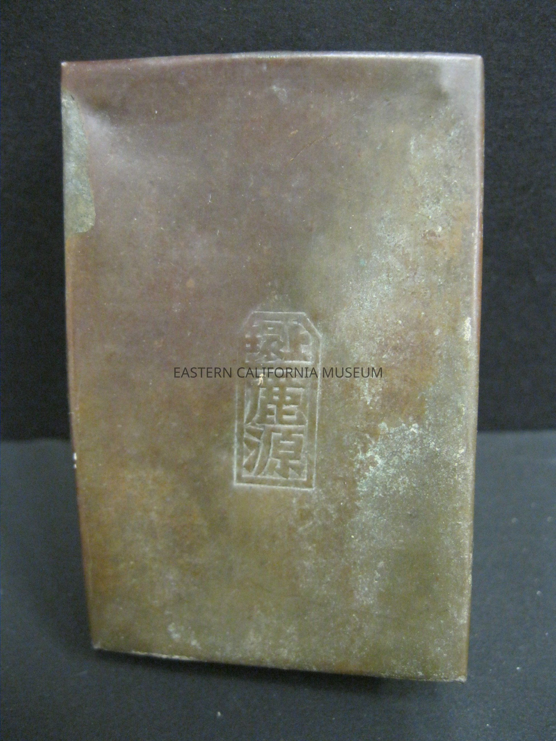 Metal opium can lid with a (Chinese?) logo stamp that represents the Lai Yuen brand of opium.