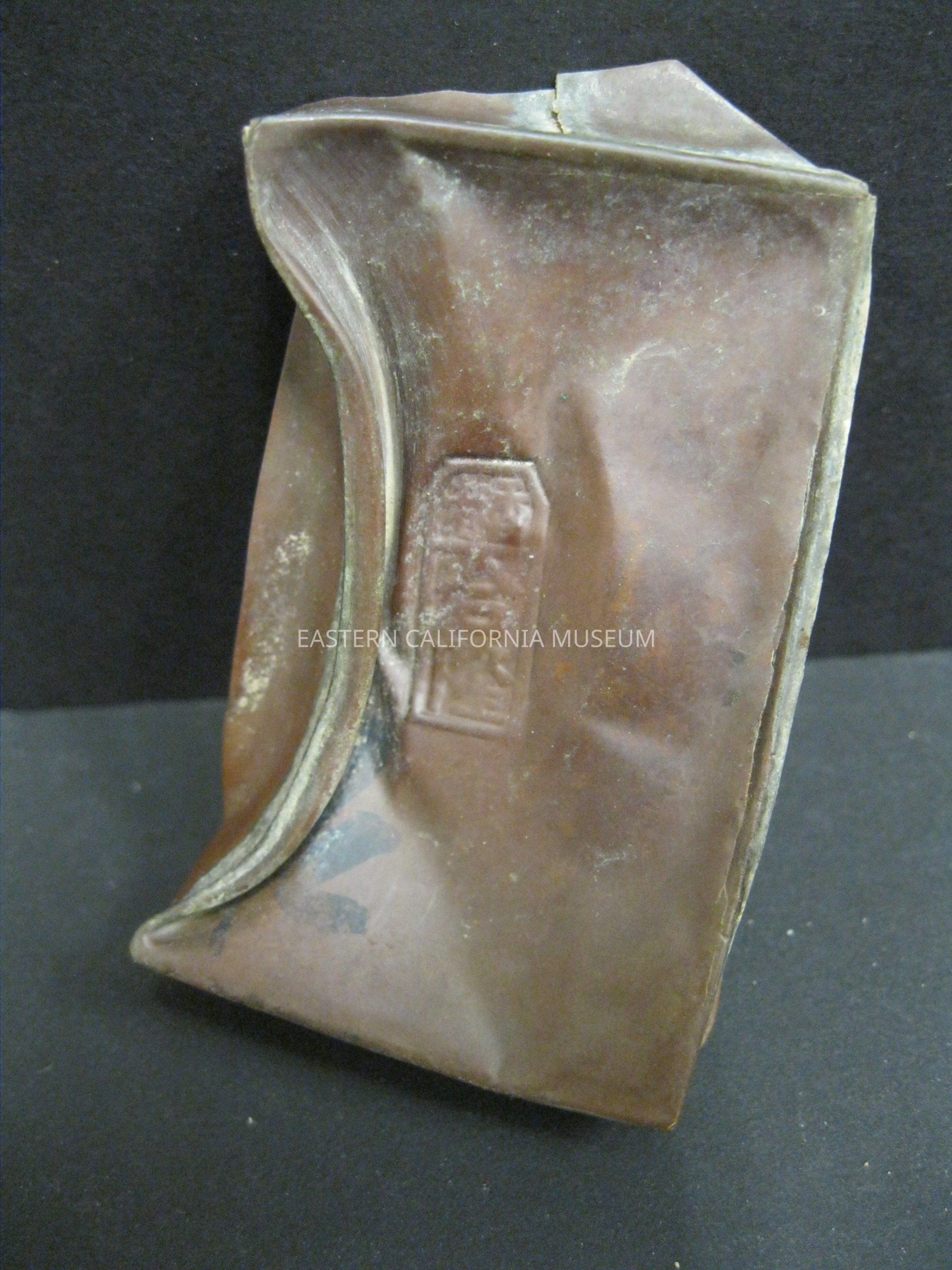 Metal opium can lid with a (Chinese?) logo stamp that represents the Hop Lung brand of opium.