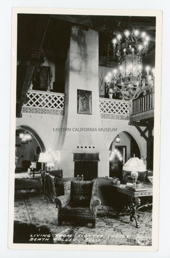 Photo postcard of Death Valley Scotty's Castle. It is labeled, "Living Room, Scotty's Castle, Death Valley, Calif."Collection
