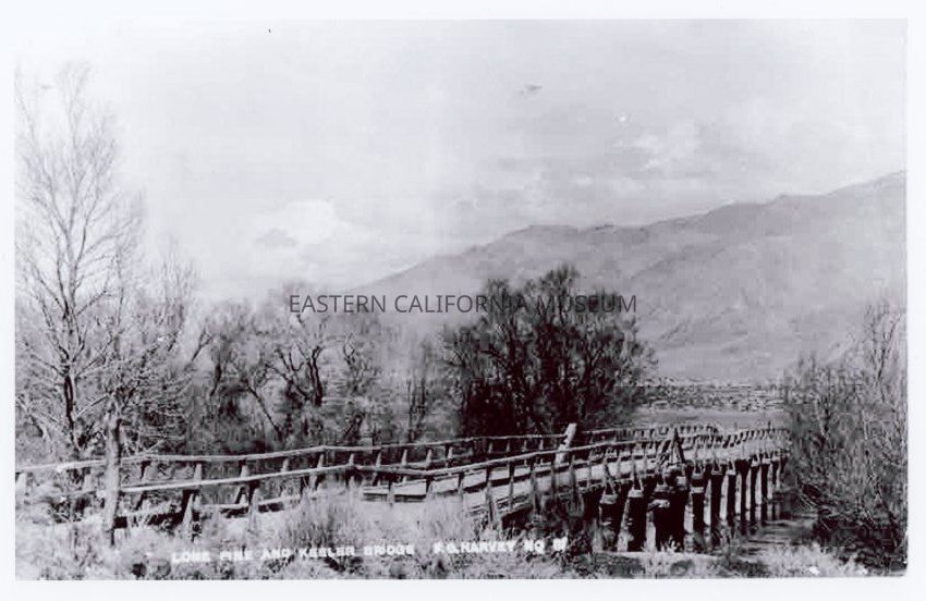 Poor low resolution copy of a photo titled, "Lone Pine and Keeler bridge" which crossed over the Owens River. It was taken by photographer Fred Harvey and given his ID #81.Collection