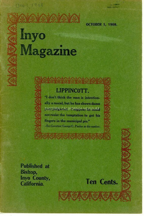Inyo Magazine, October 1, 1908. It was previously owned by the Inyo County Free Library.