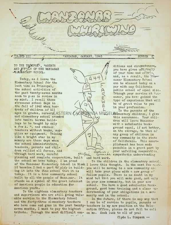 The Manzanar Whirlwind was published by the Manzanar Elementary Schools.