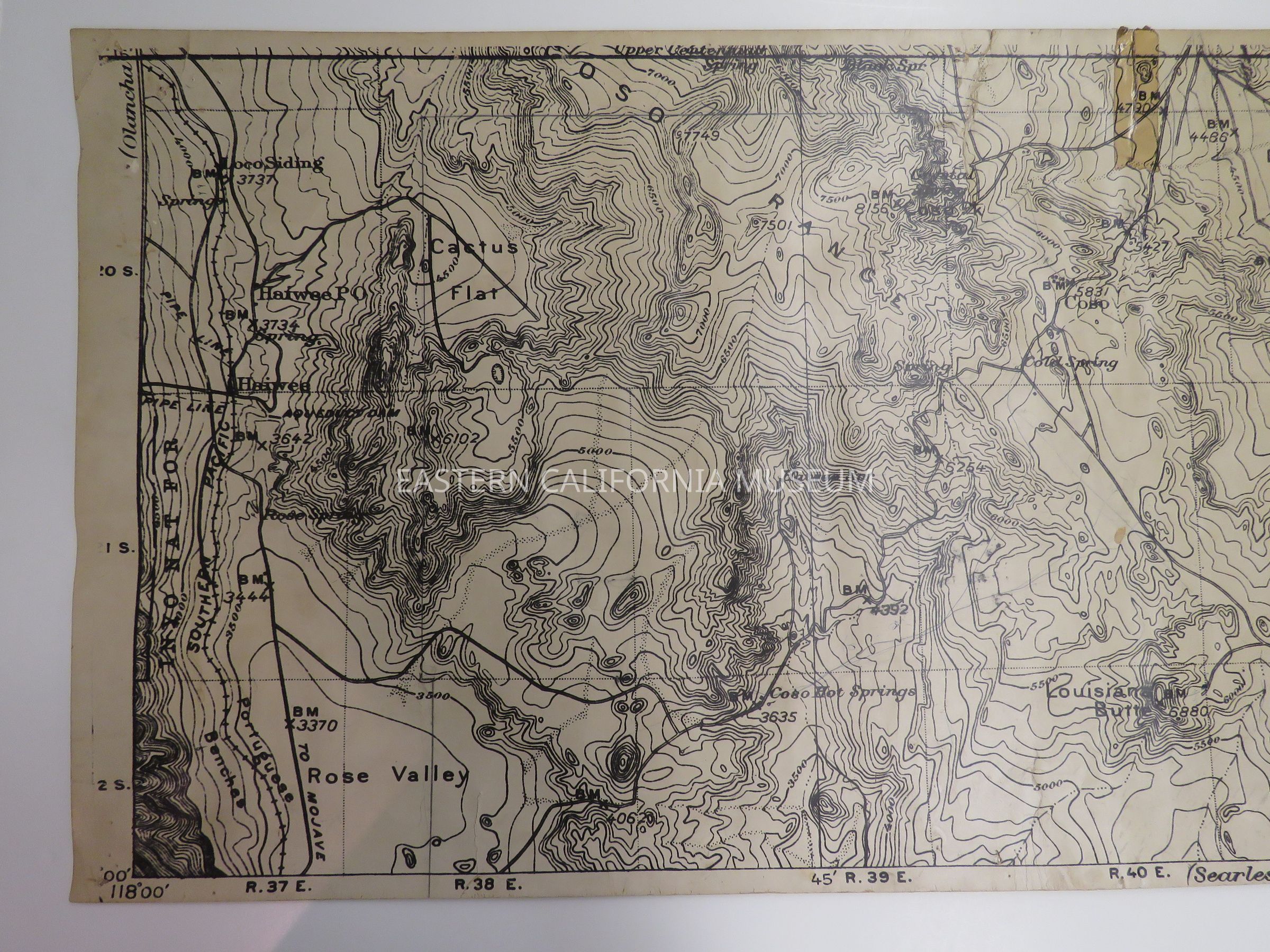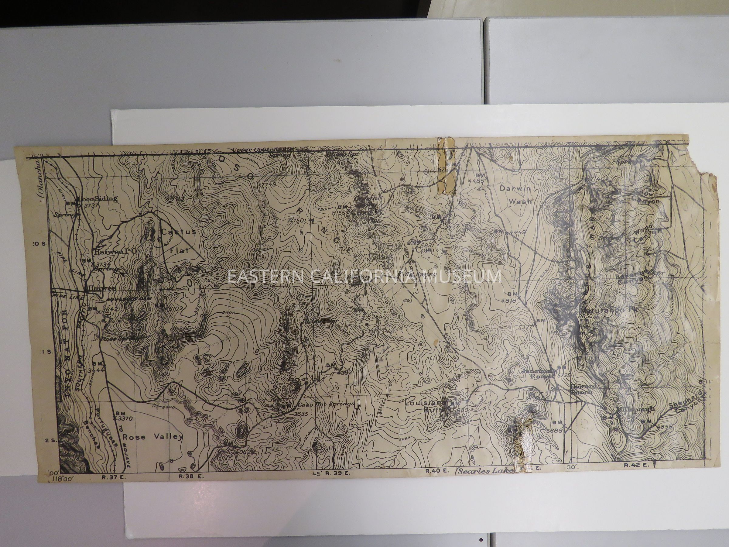 Enlarged copy of a map of the Haiwee, Cactus Flat, Rose Valley, Coso Hot Springs, and Darwin Wash area.