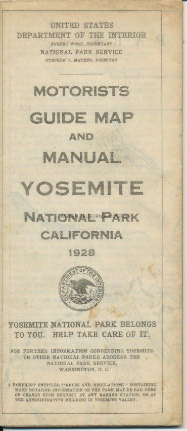 Motorists Guide Map and Manual to Yosemite National Park, California, 1928. Produced by the U.S. Department of the Interior.