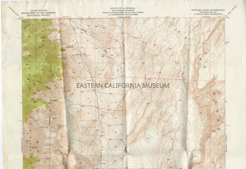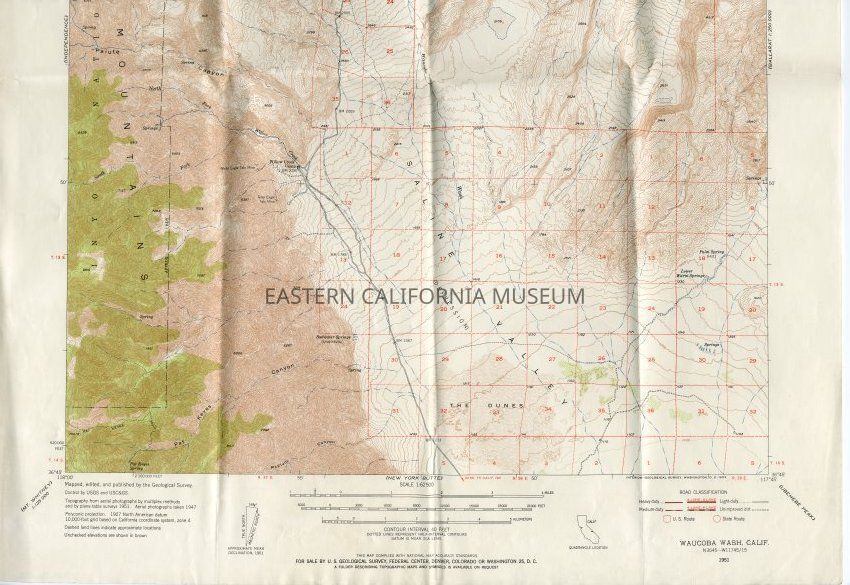 US Department of the Interior, Geological Survey, Waucoba Wash Quadrangle topographic map, 1951.