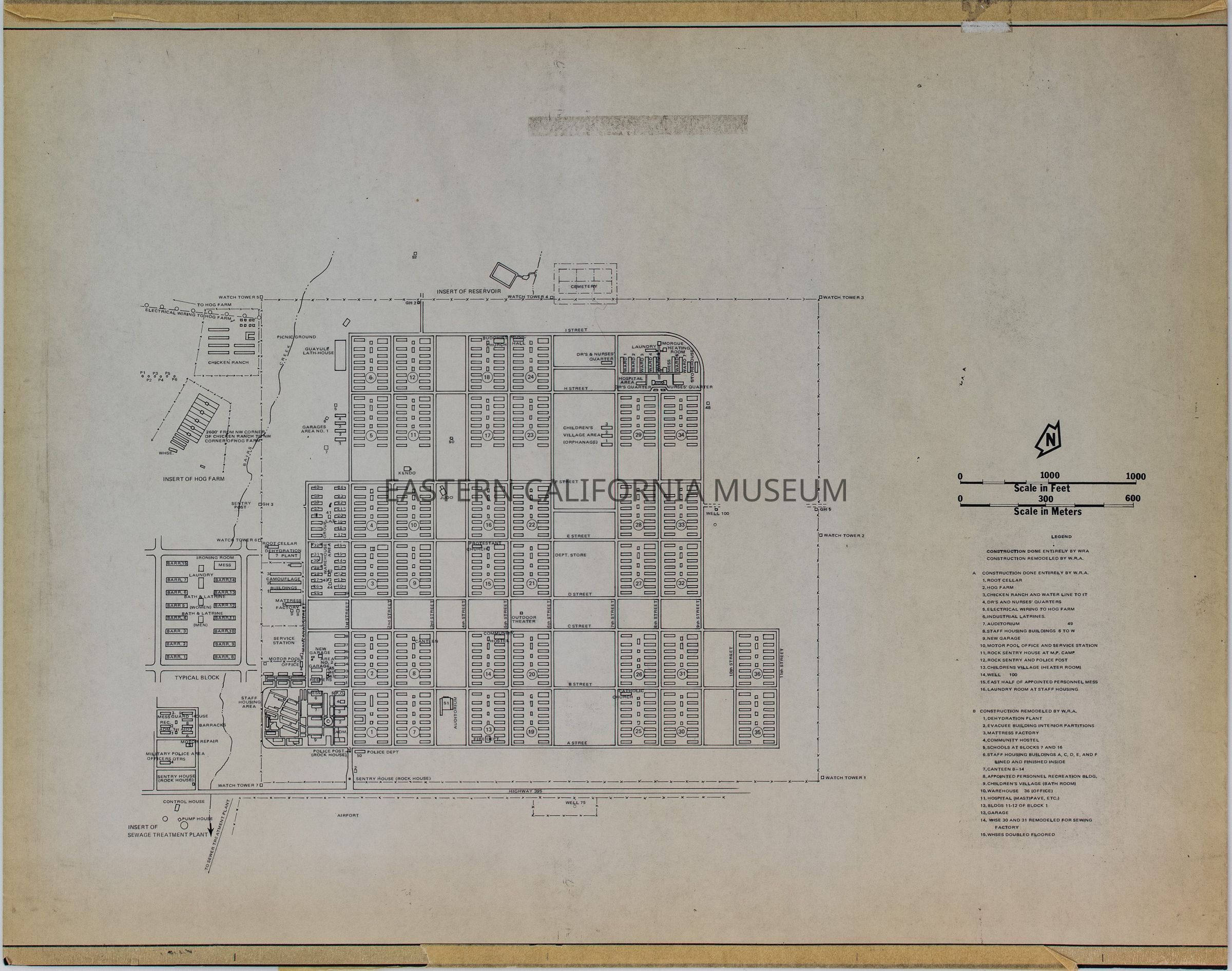 Map titled "Manzanar Project" (drawing #16687) of Manzanar War Relocation Center. It may have been made by or acquired from the Resources Agency of California, Department of Parks and Recreation.