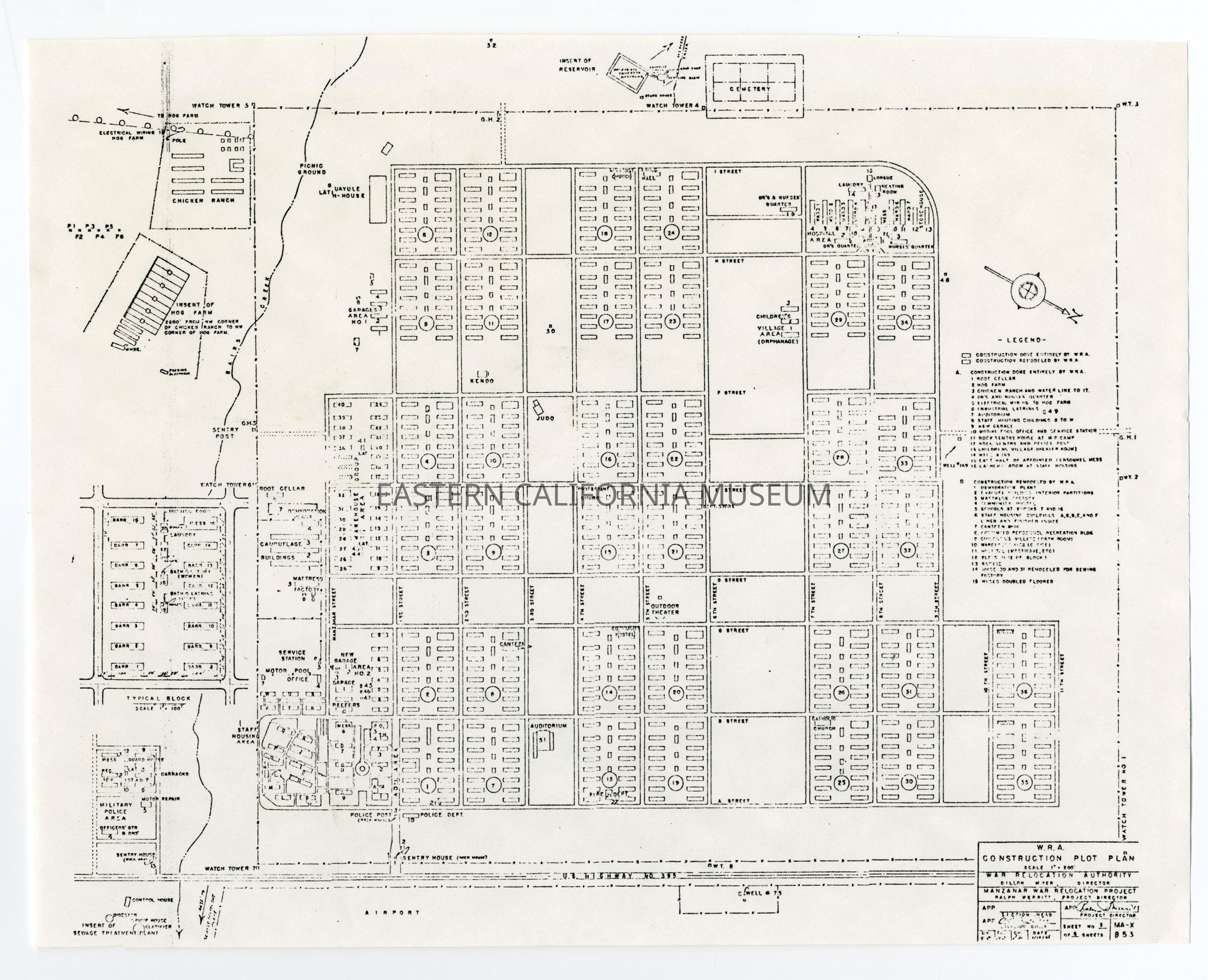 Photocopied map of Manzanar War Relocation Center.