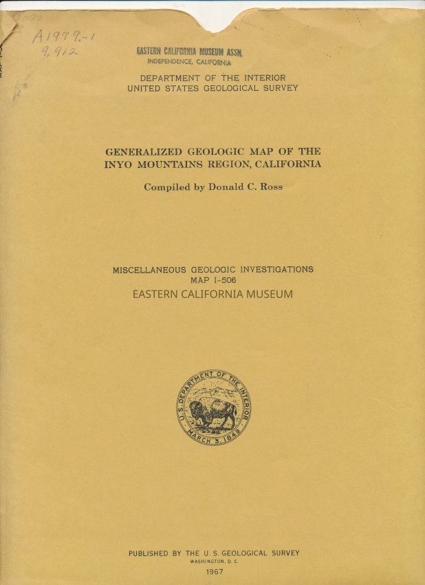 "Generalized Geologic Map of the Inyo Mountains Region, California" Compiled by Donald C.Ross, U.S. Geological Survey, 1967