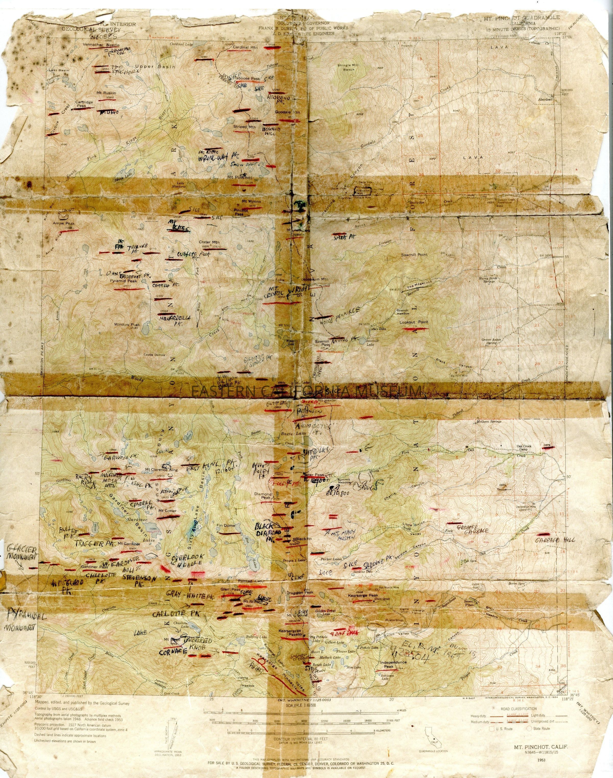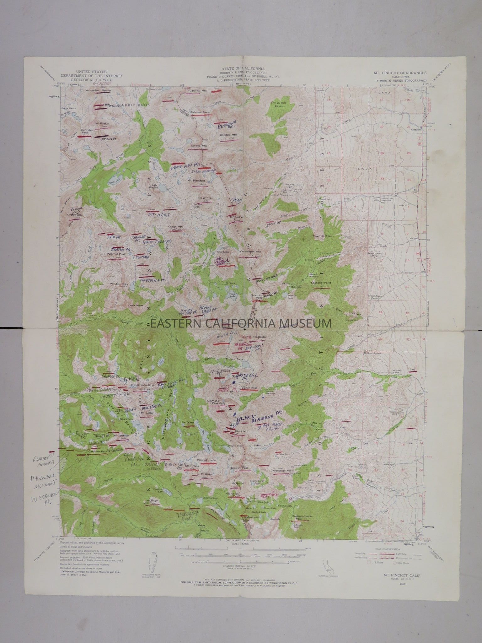 2024.22.32--Copy of a map mounted on foam core: Mt. Pinchot Quadrangle, 15' Series (Topographic), 1953.