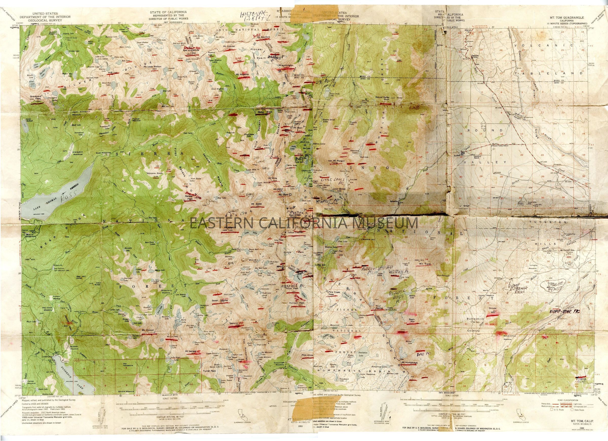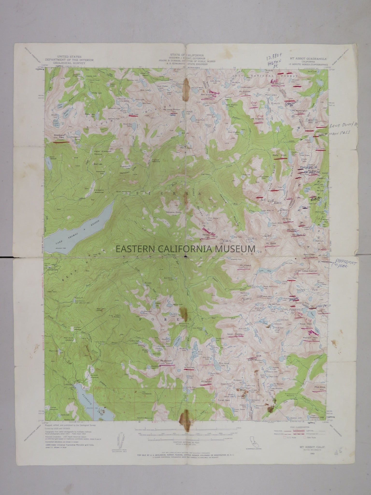2024.22.37--Copy of two maps mounted on foam core: Mt. Abbot Quadrangle, 15' Series (Topographic), 1953 AND Mt. Tom Quadrangle, 15' Series (Topographic), 1949.Collection