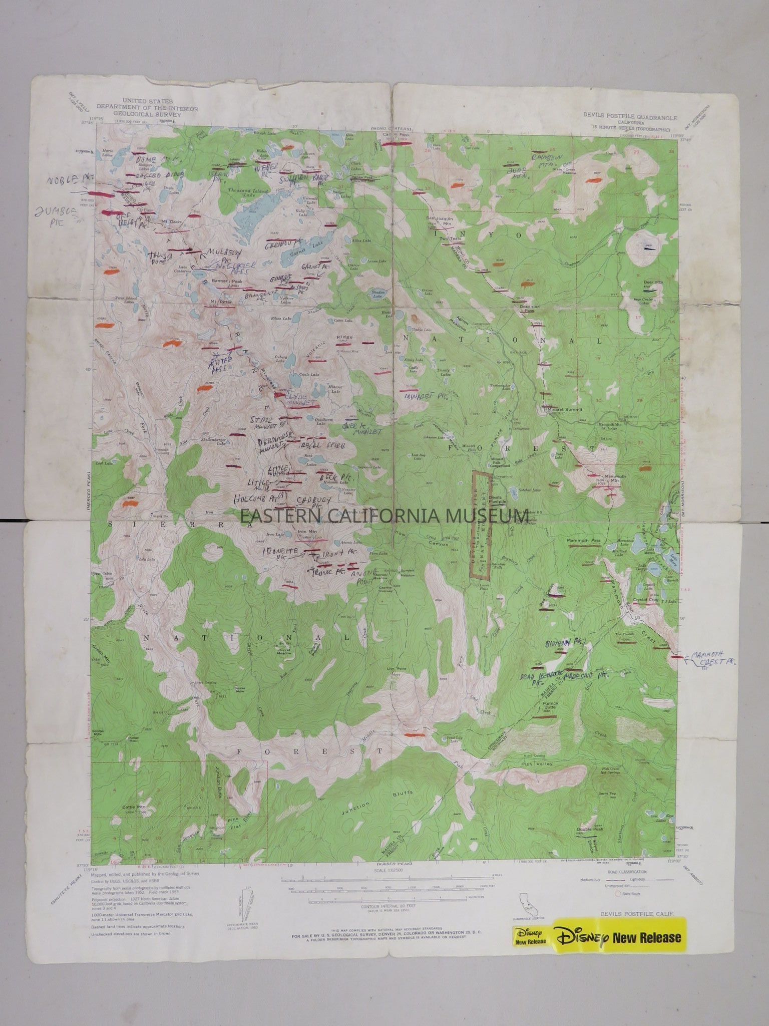 2024.22.19--Devils Postpile Quadrangle, 15' Series (Topographic), 1953. Mended with tape on reverse.
