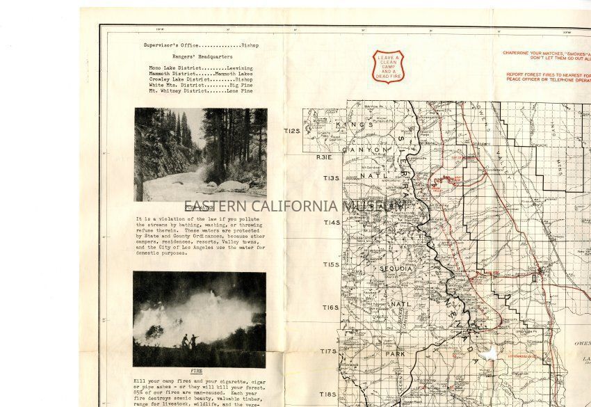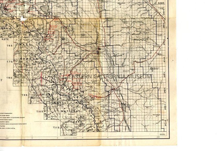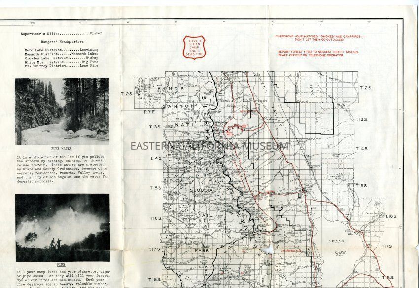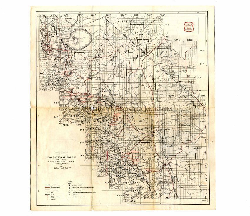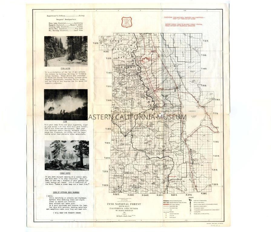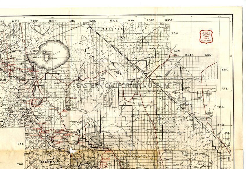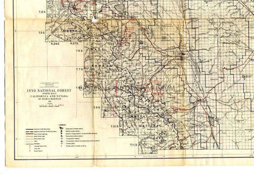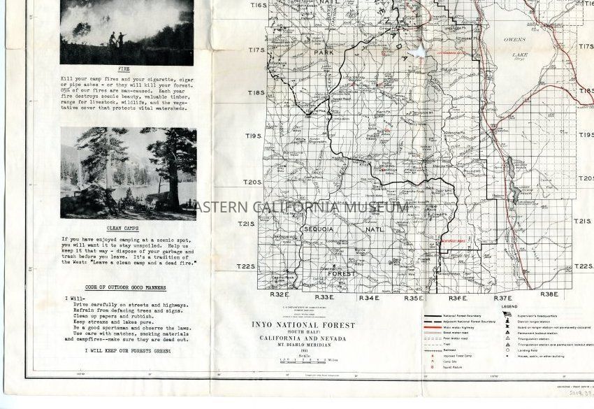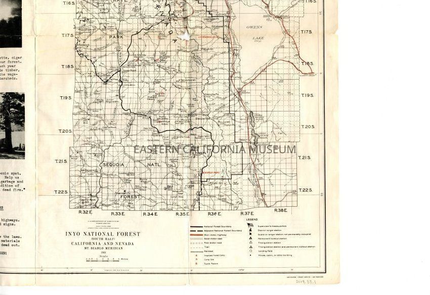 Inyo National Forest map, 1951. Has a hole in the middle from folding.