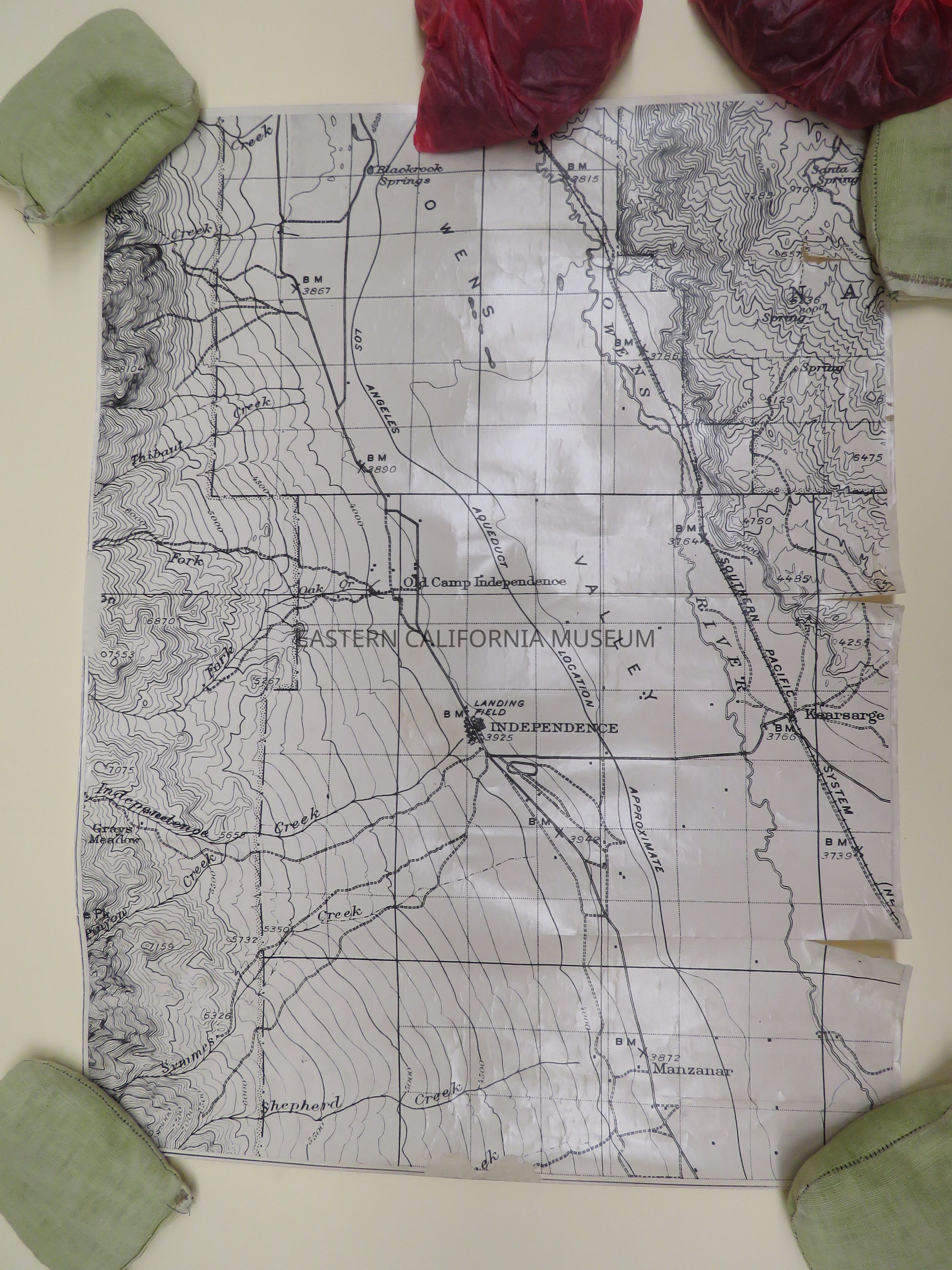 Enlargement of part of a topographic map showing the approximate location of the Los Angeles Aqueduct from Blackrock Springs in the north to Manzanar in the south.