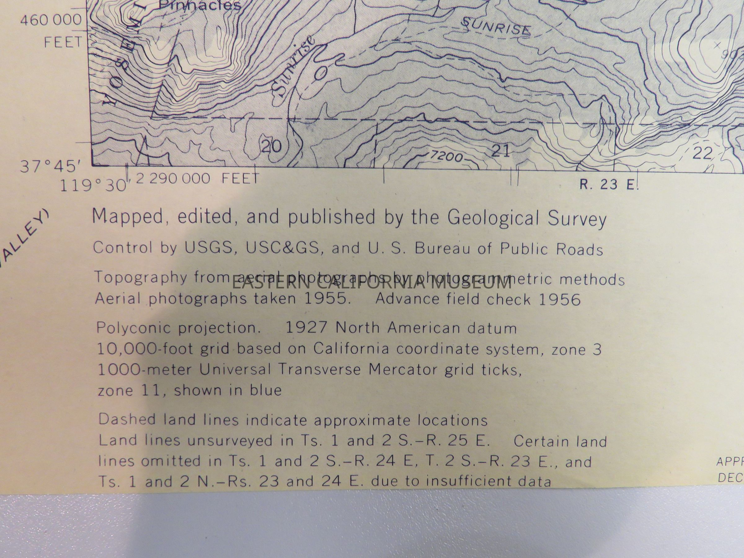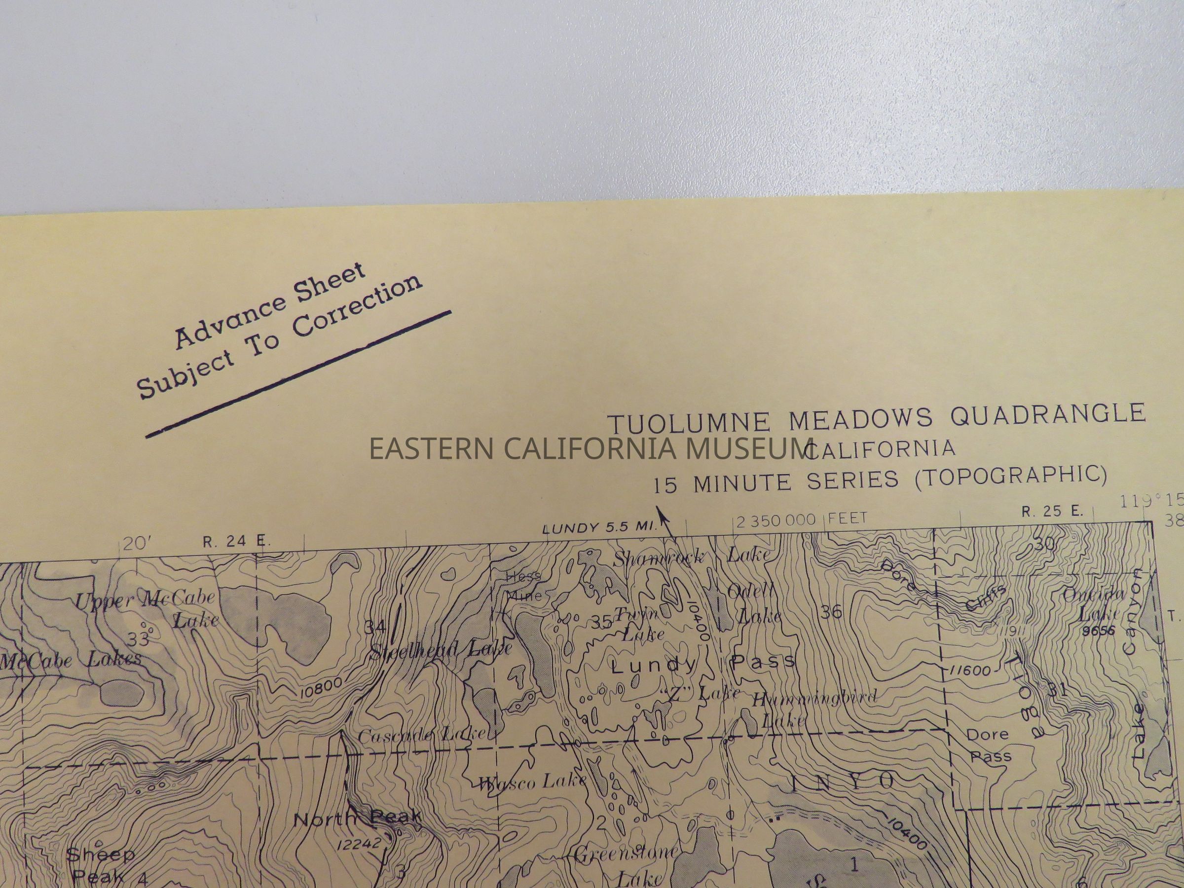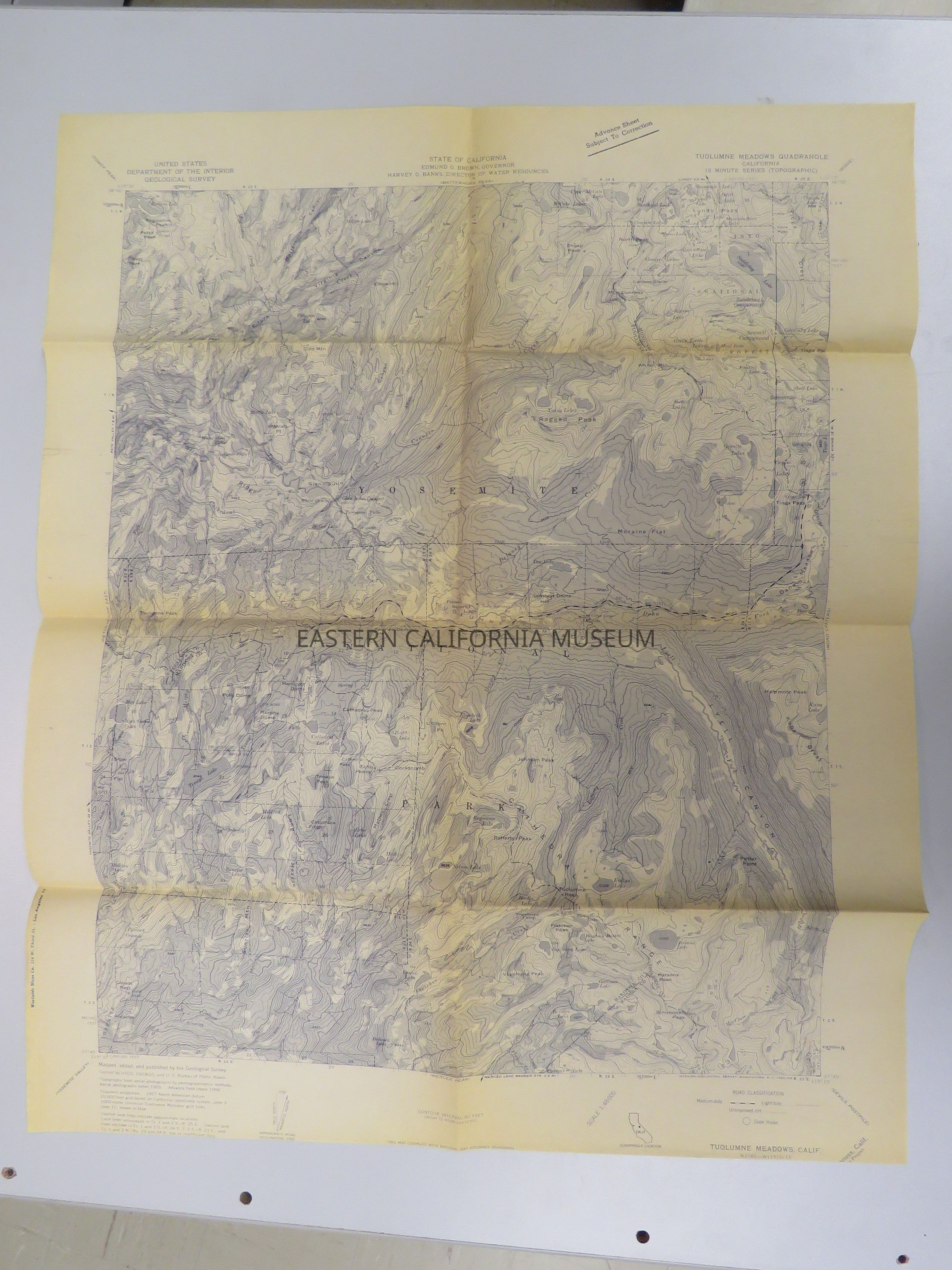 Advance copy of a Tuolumne Meadows Quad map, c. 1957.