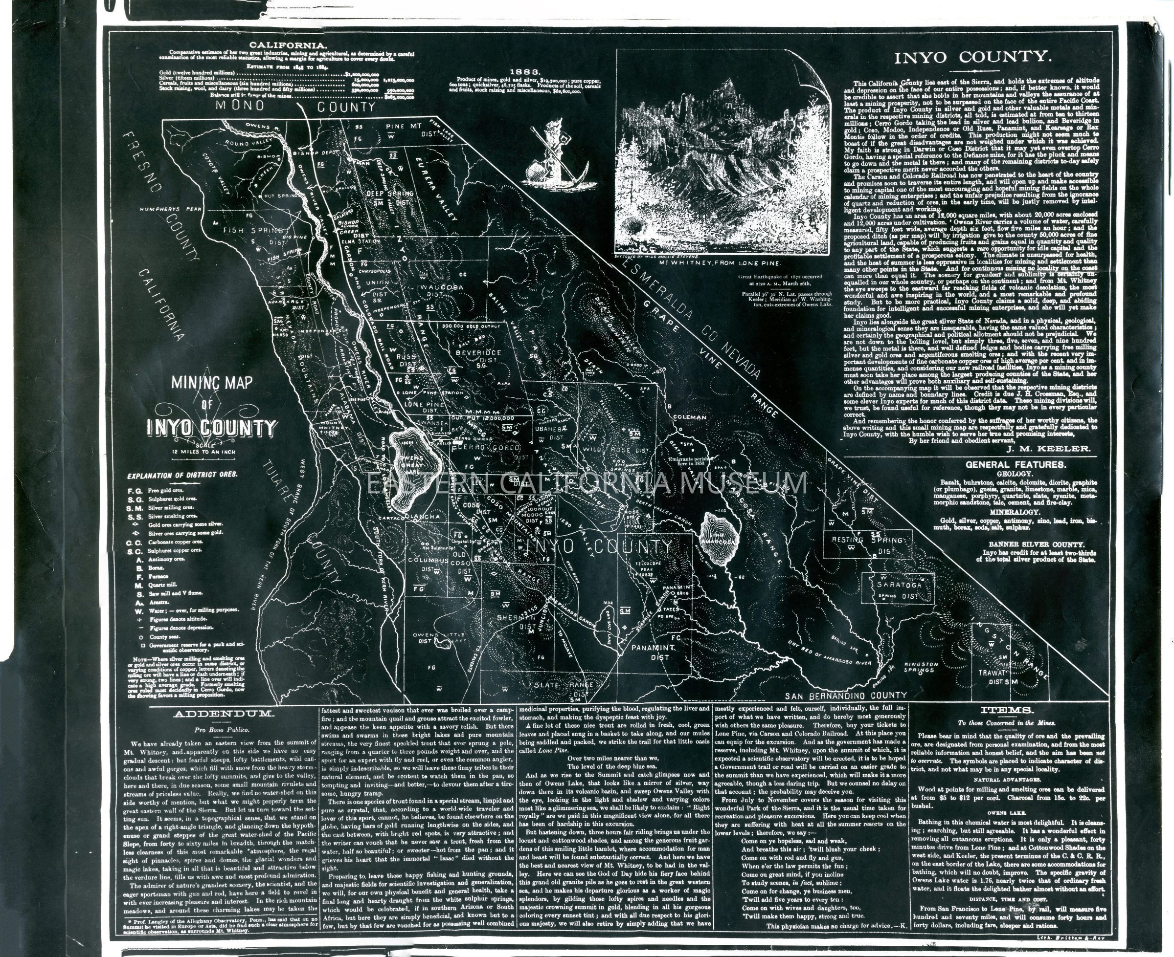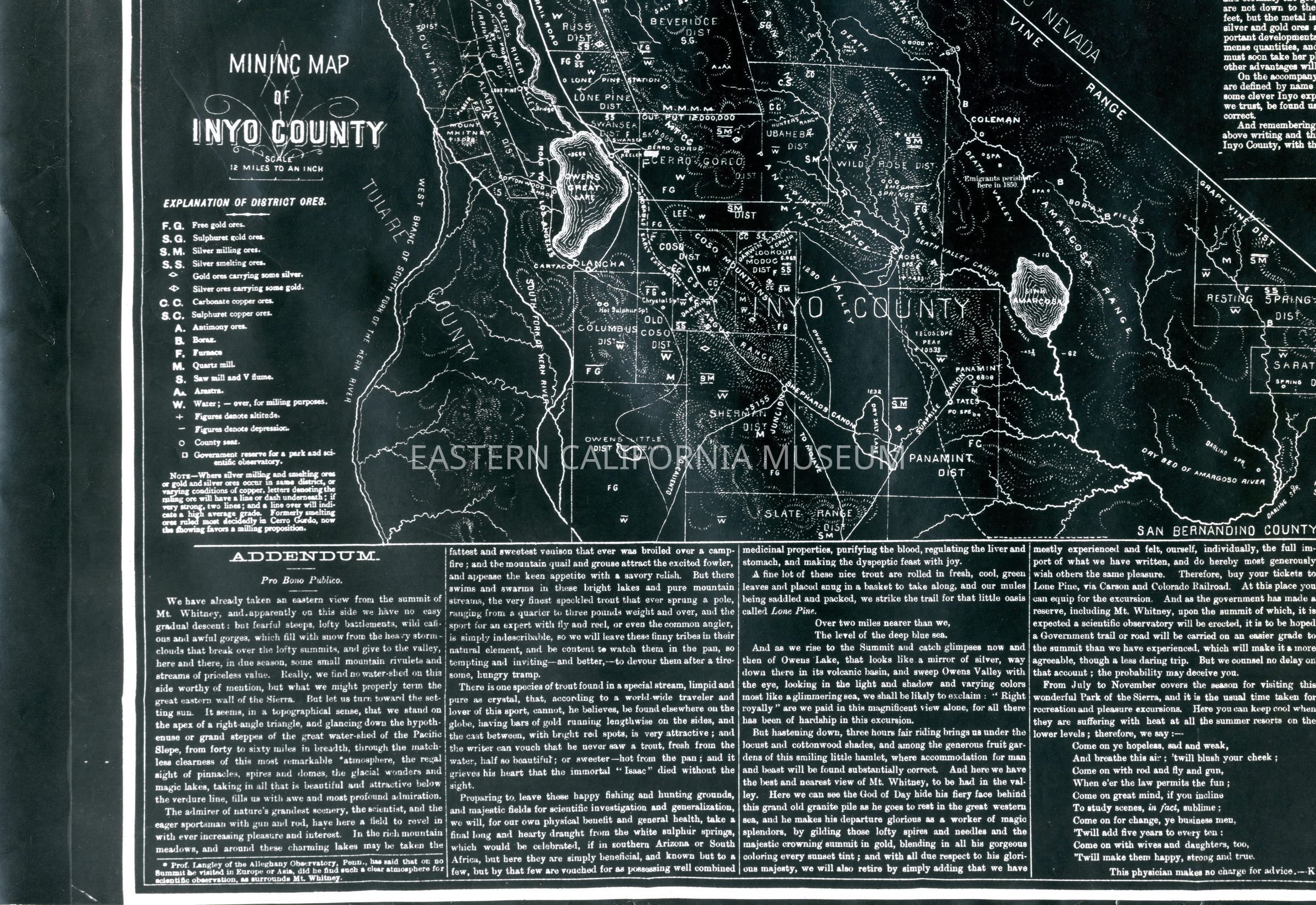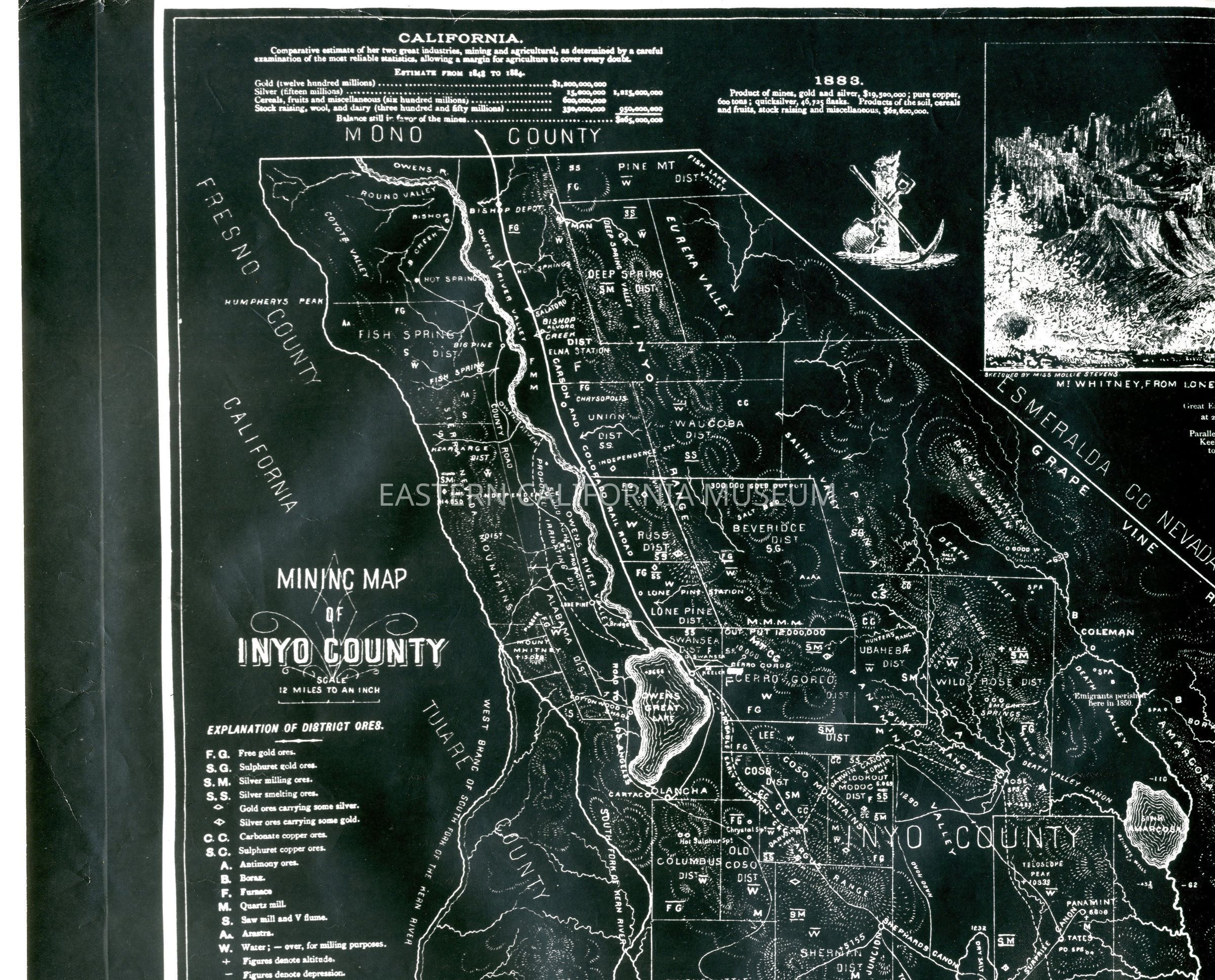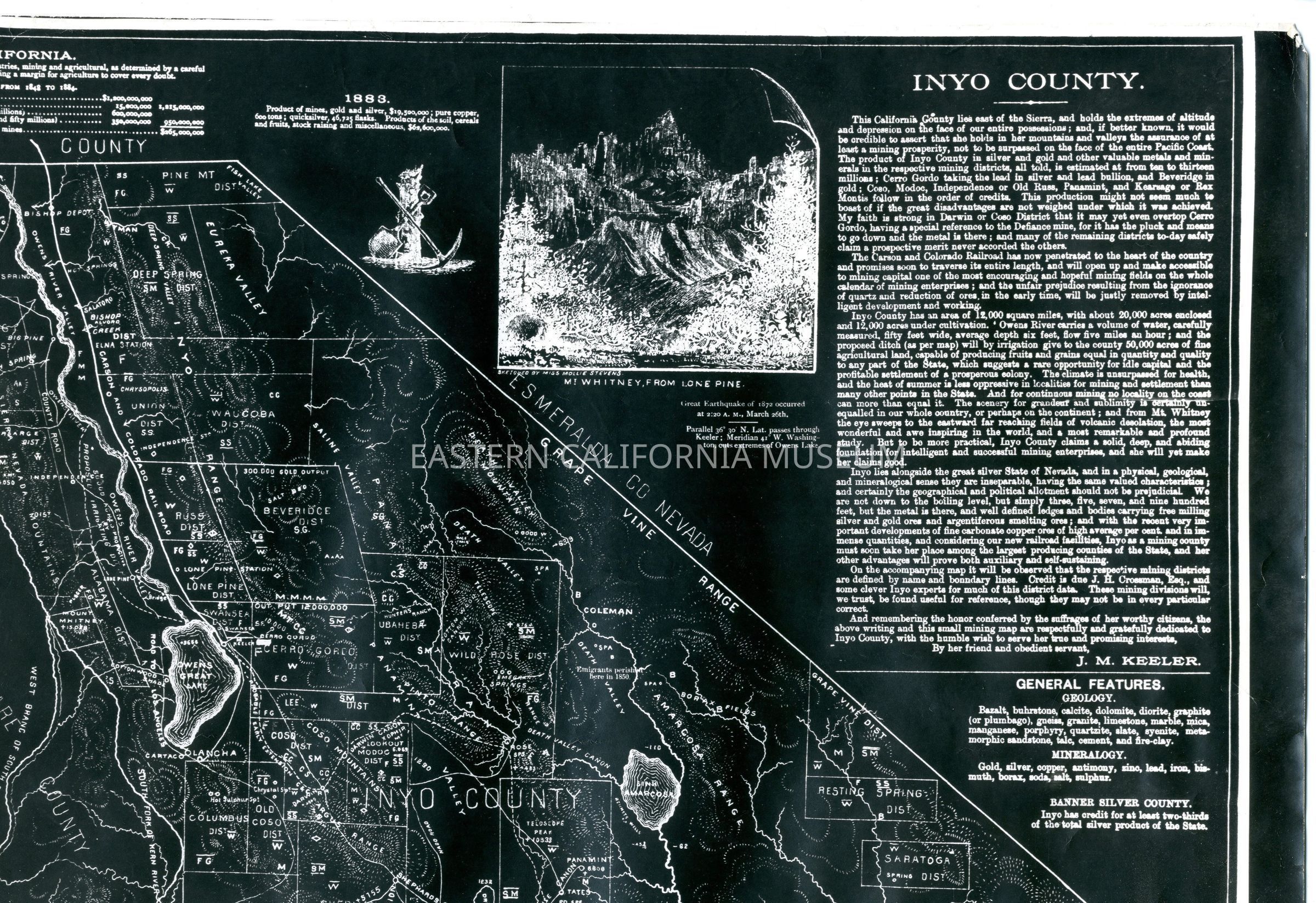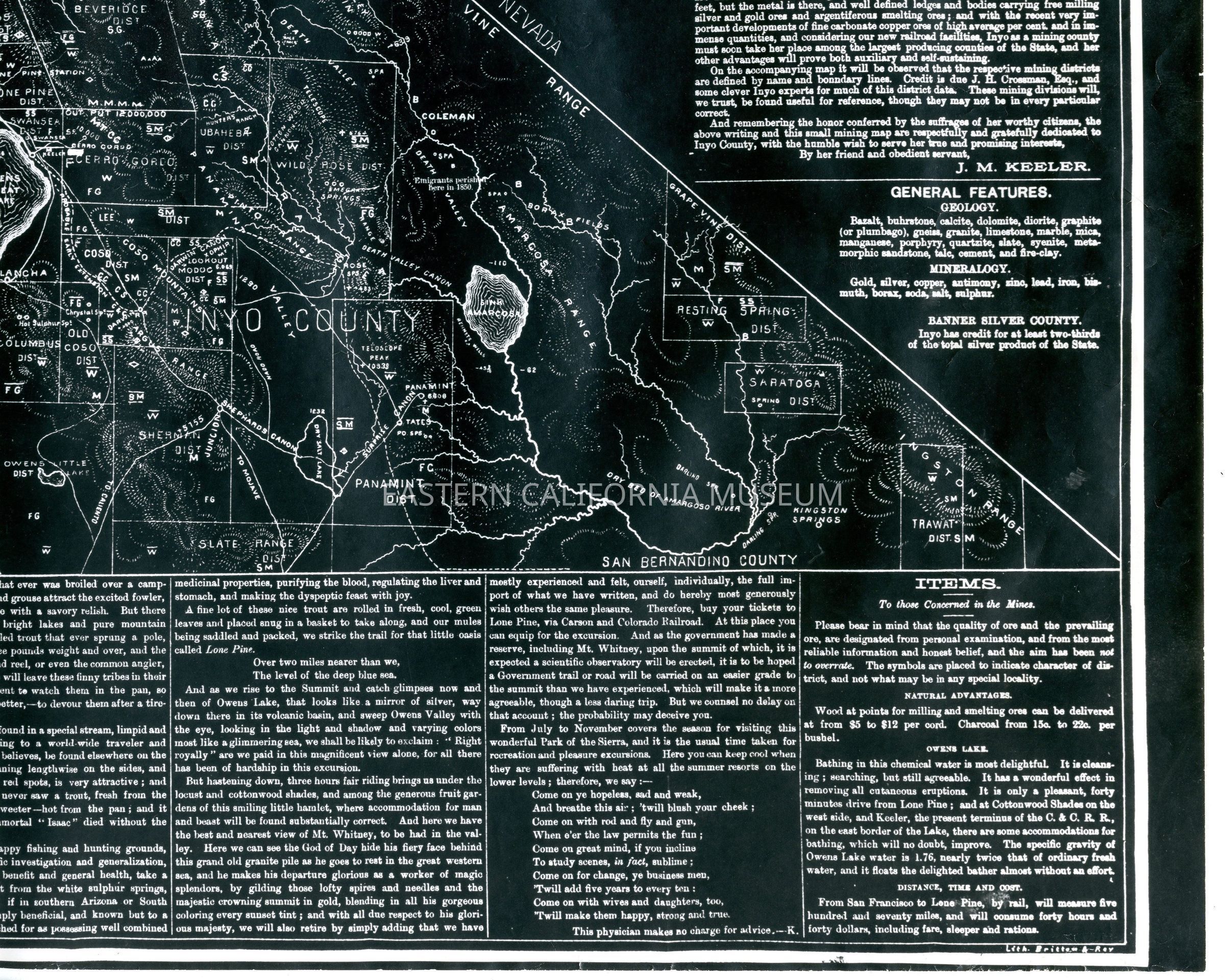 Negative of an Inyo Mining map circa 1883, sized 18 x 21.5".