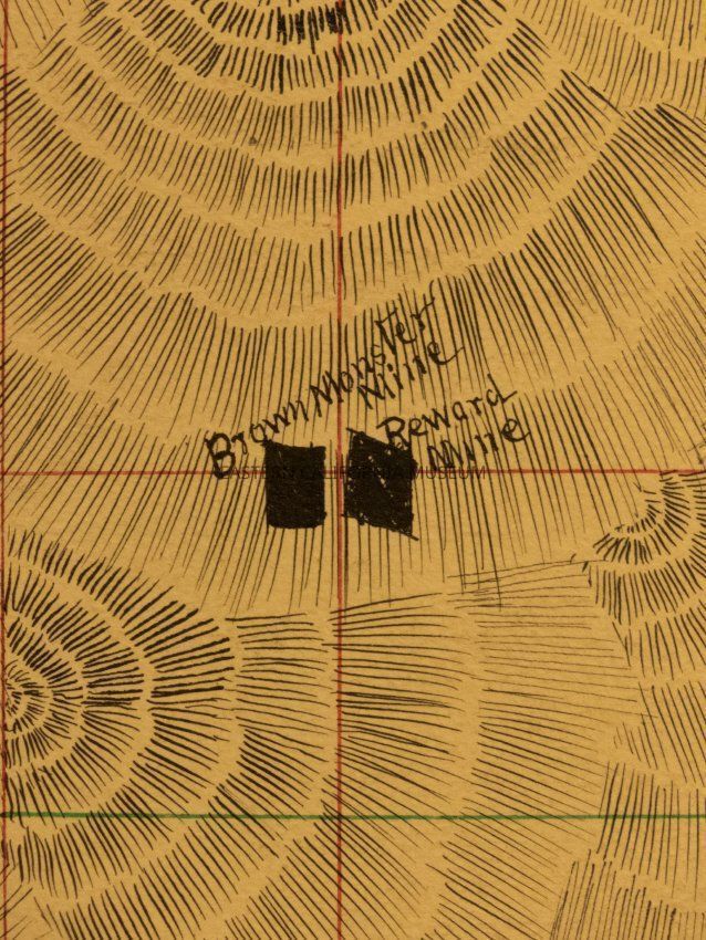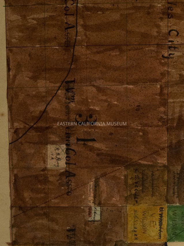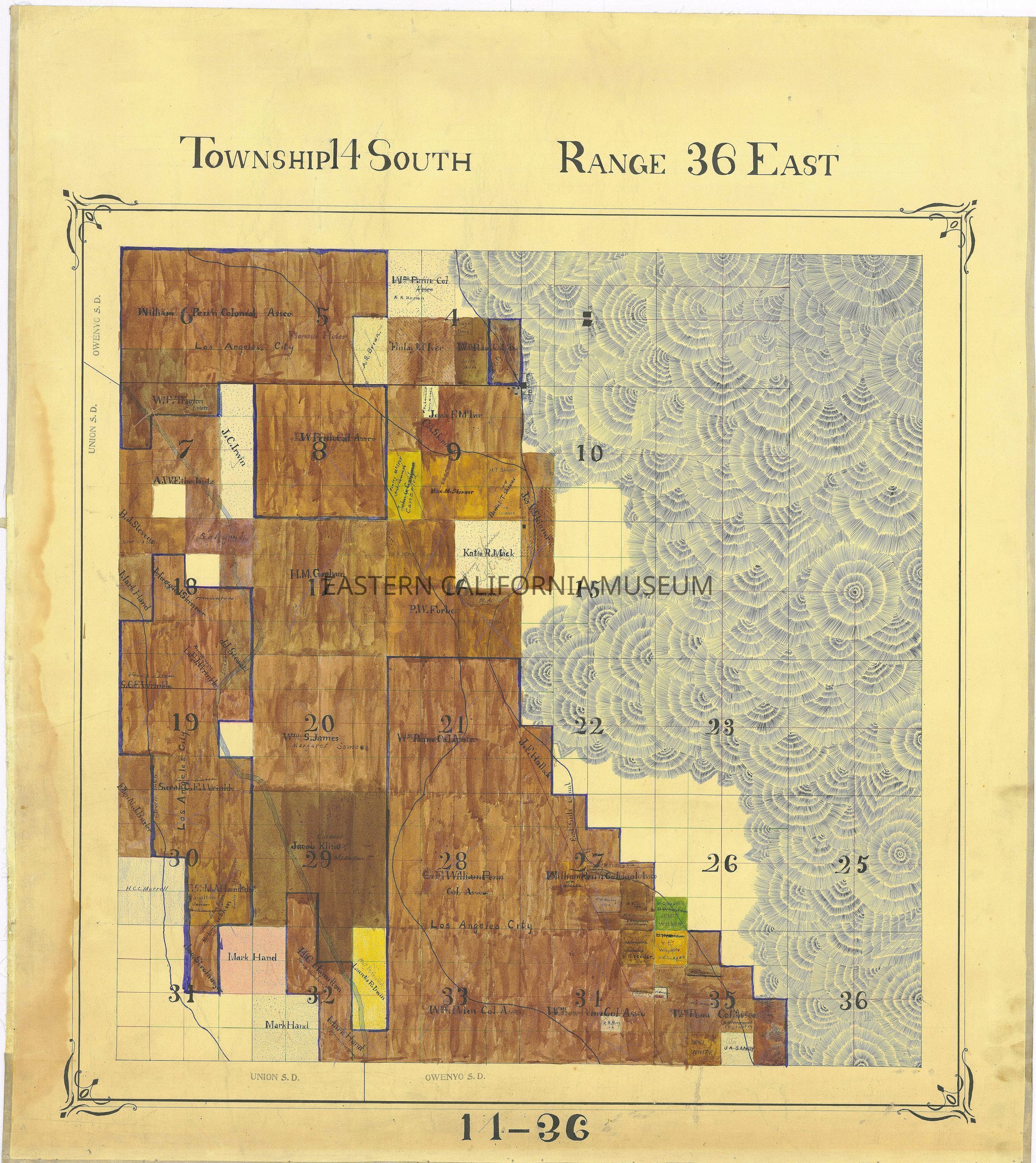 Plat map showing land ownership circa 1900s-1920s. Township 14 South, Range 36 East. It contains the Reward Mine and Brown Monster Mine, and may contain the Alabama Gates and East Side Canal.Provenance