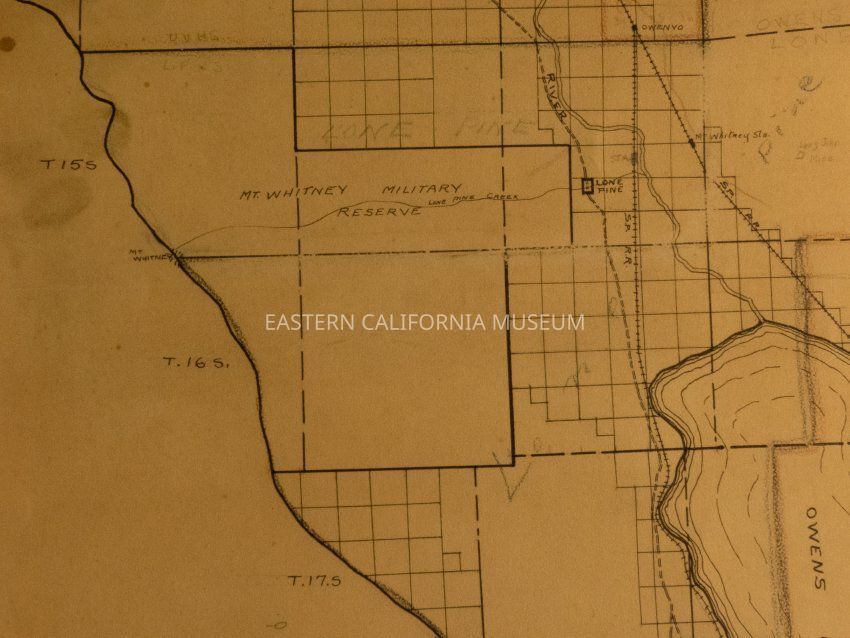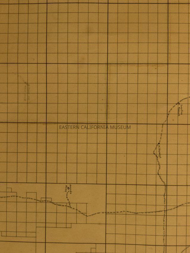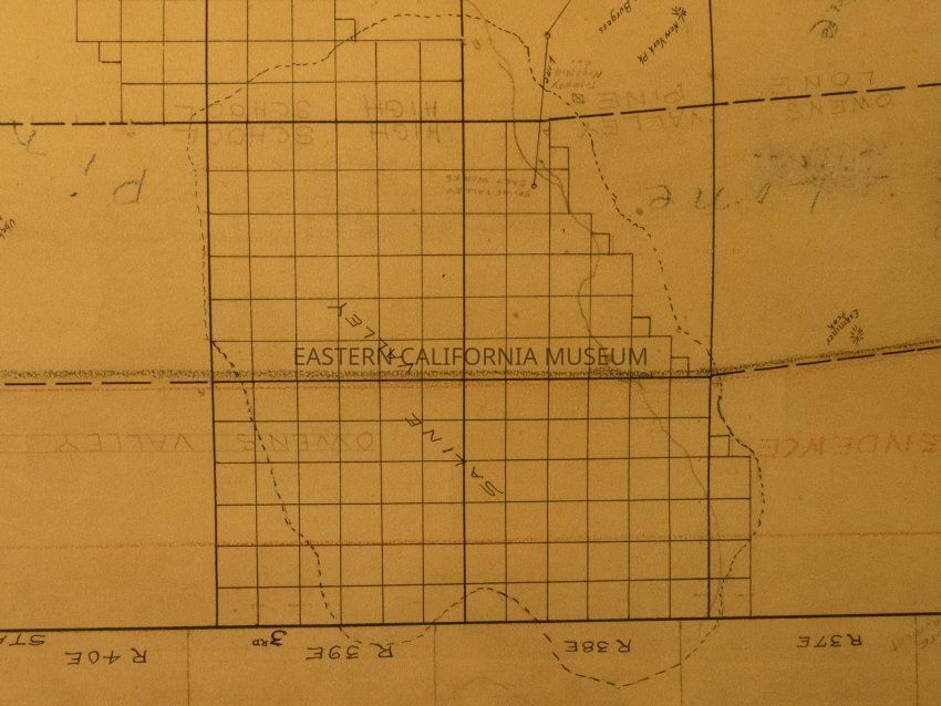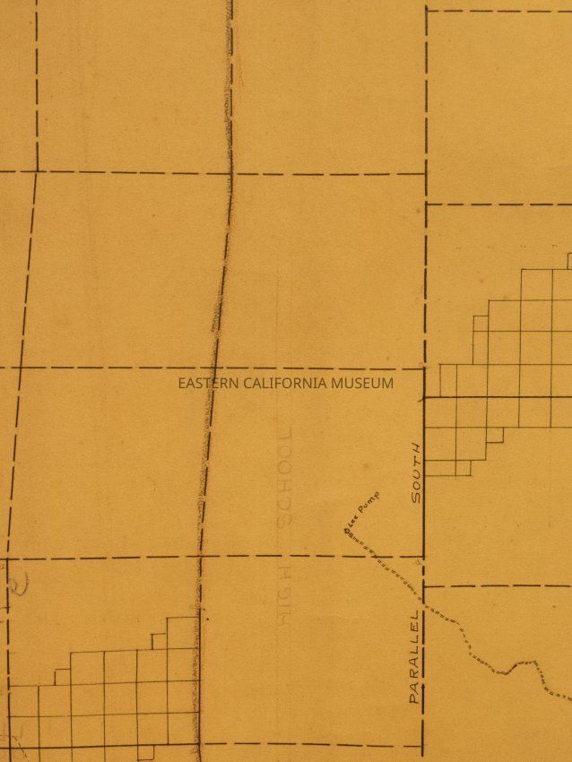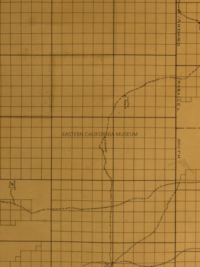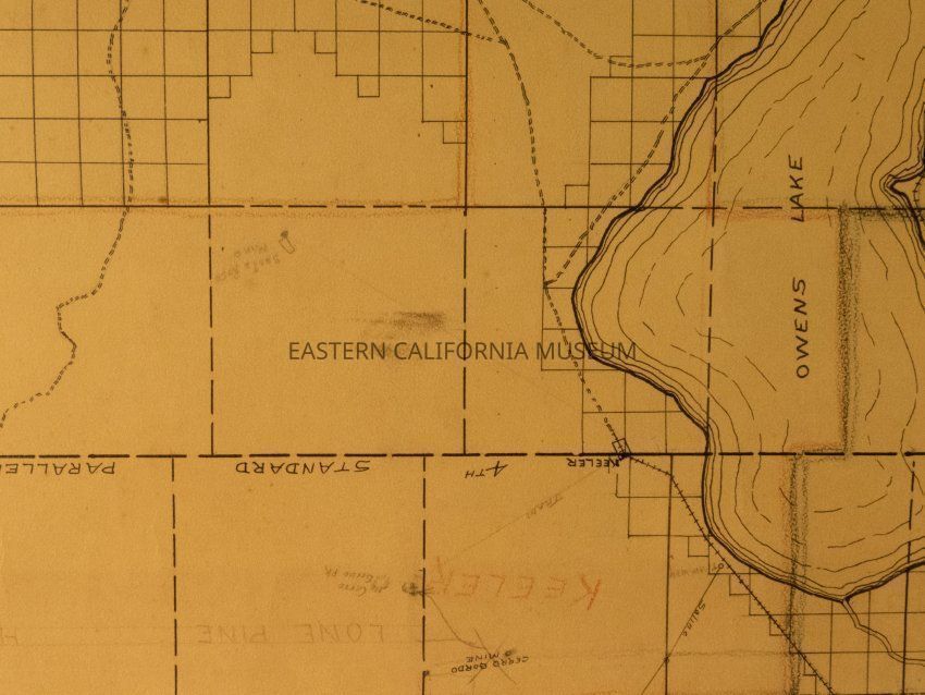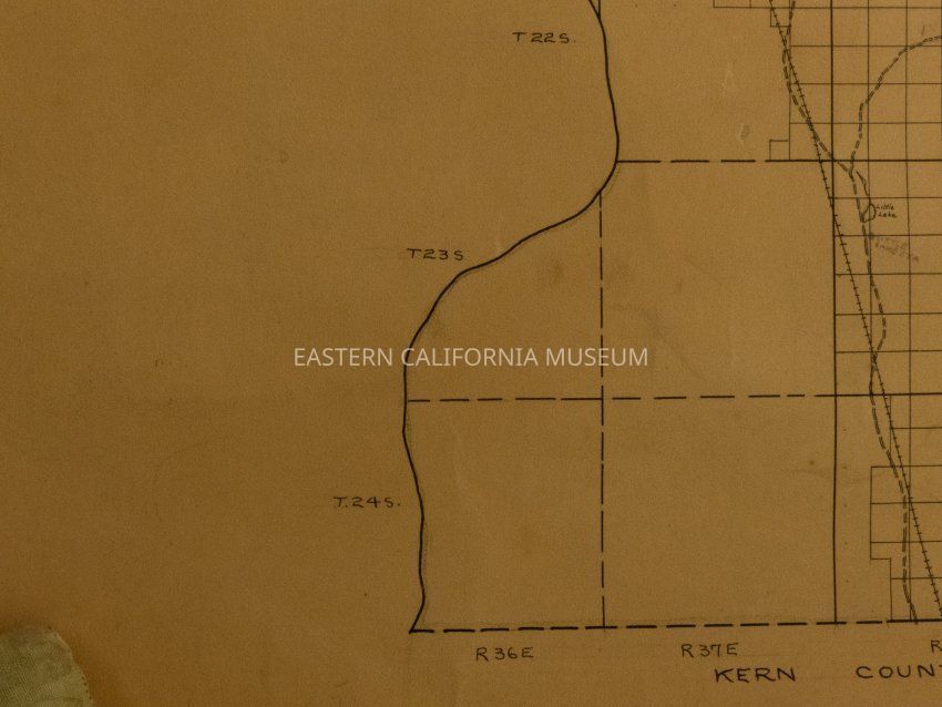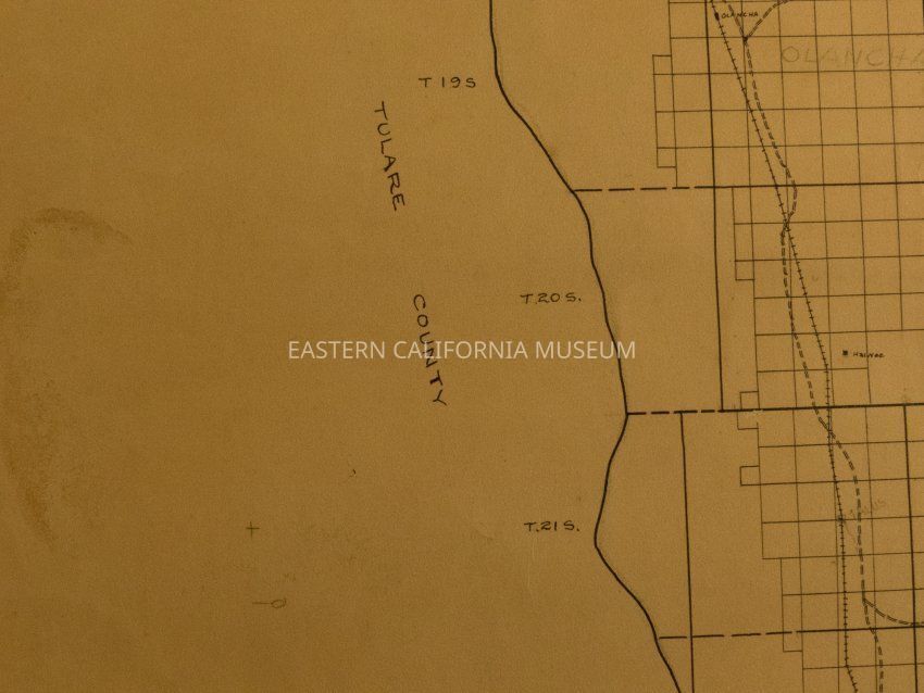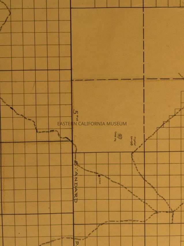 Plat map showing land ownership in School District No. 2 (Independence to Olancha). Shows schools, some mine sites, roads, and railroad stations. It dates to pre-1928.Provenance