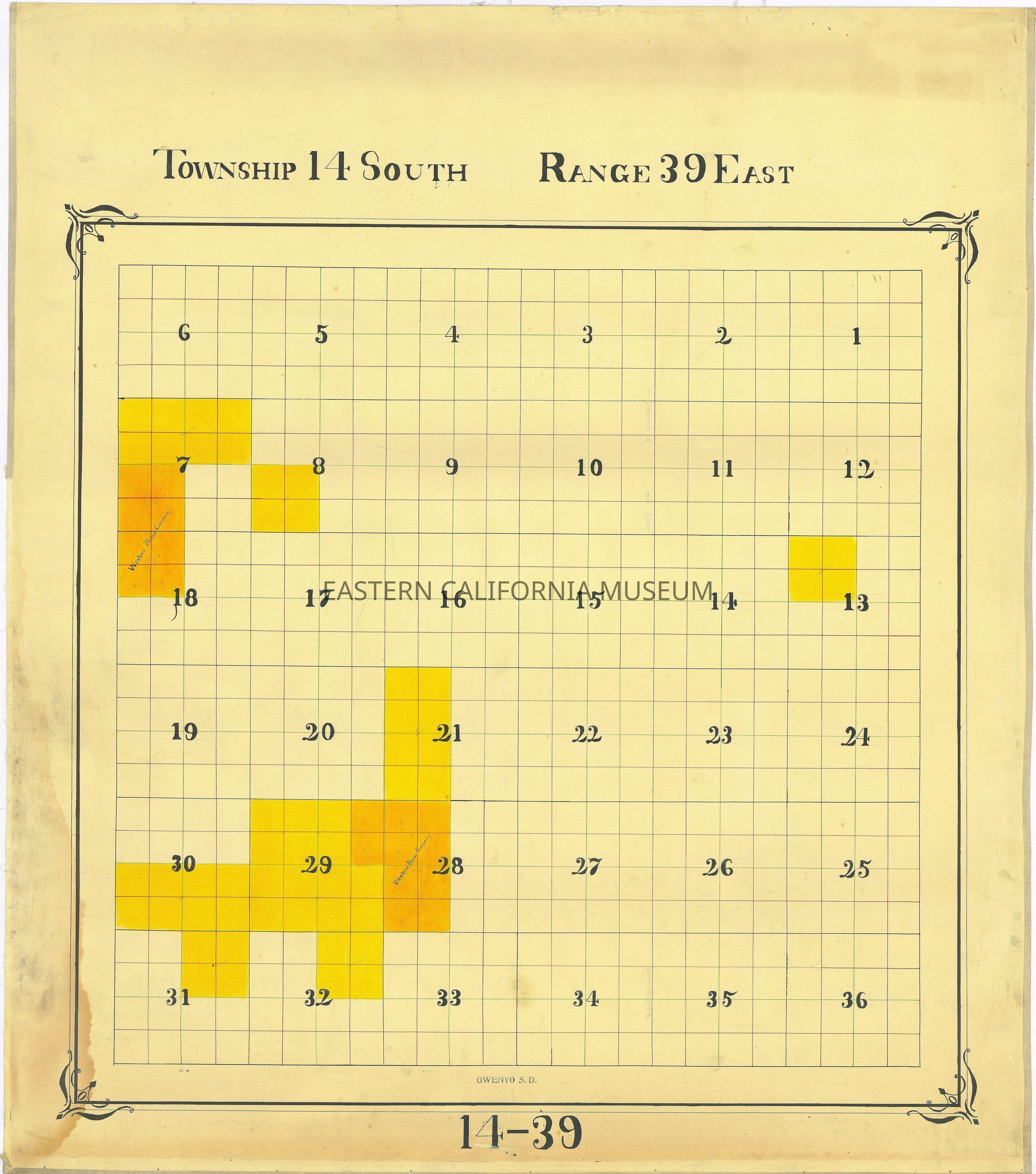 Plat map showing land ownership circa 1900s-1920s. Township 14 South, Range 39 East.