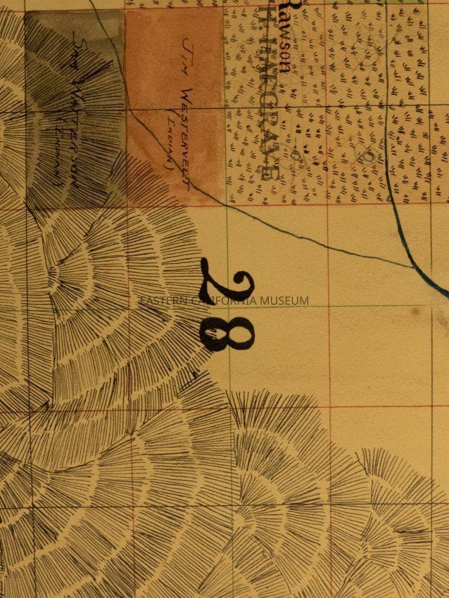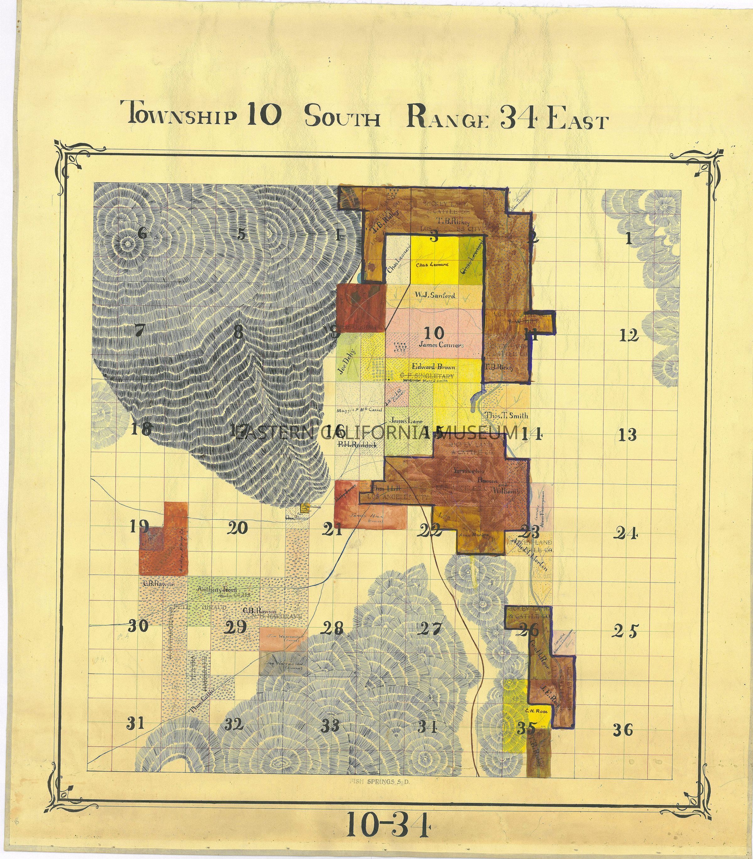 Plat map showing land ownership in the Fish Springs area circa 1900s-1920s. Township 10 South, Range 34 East.