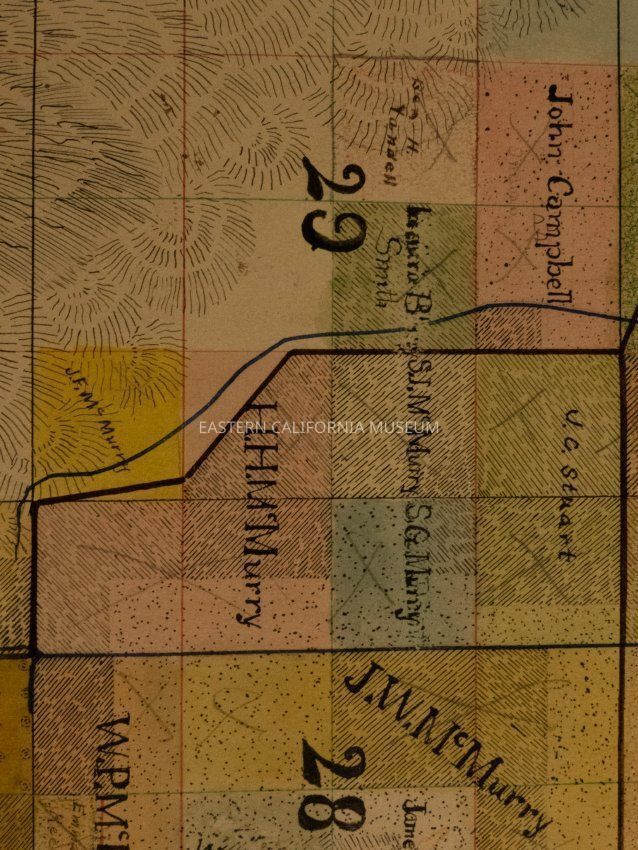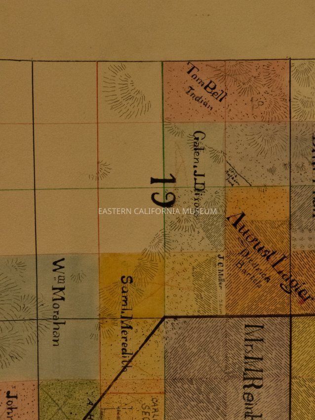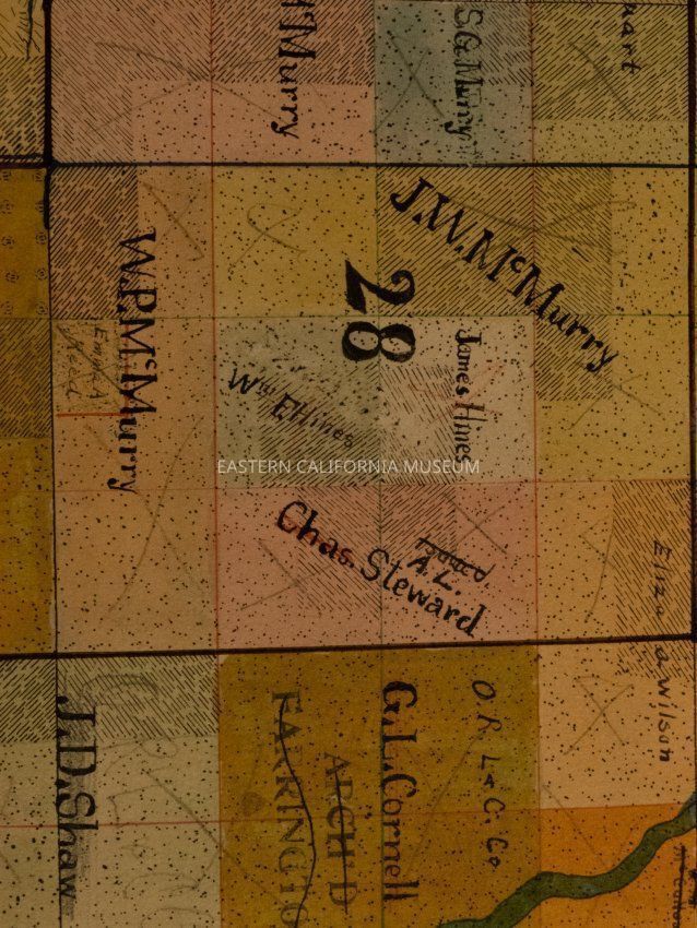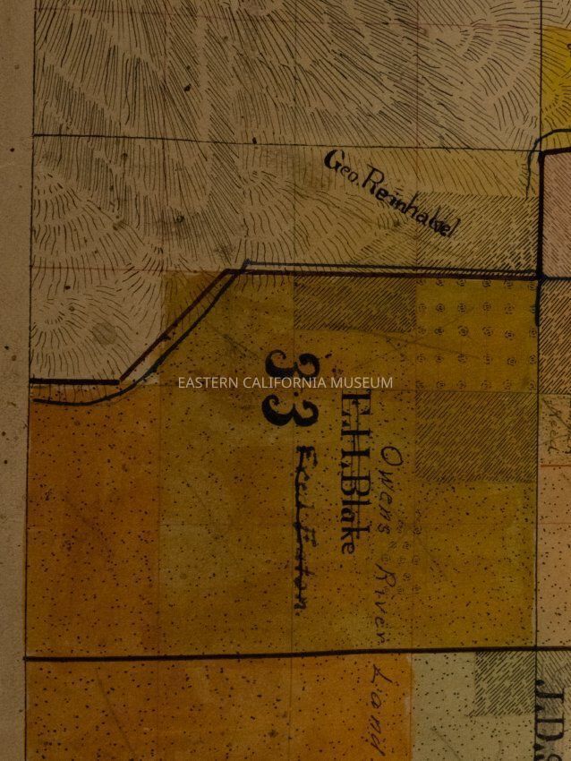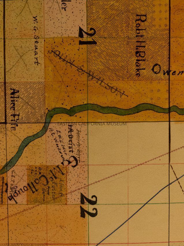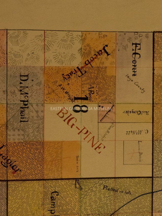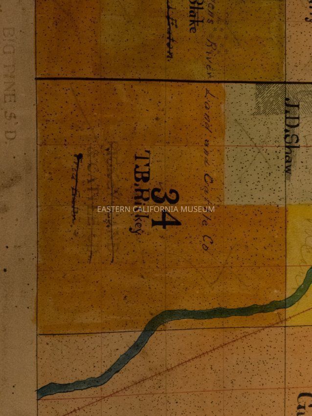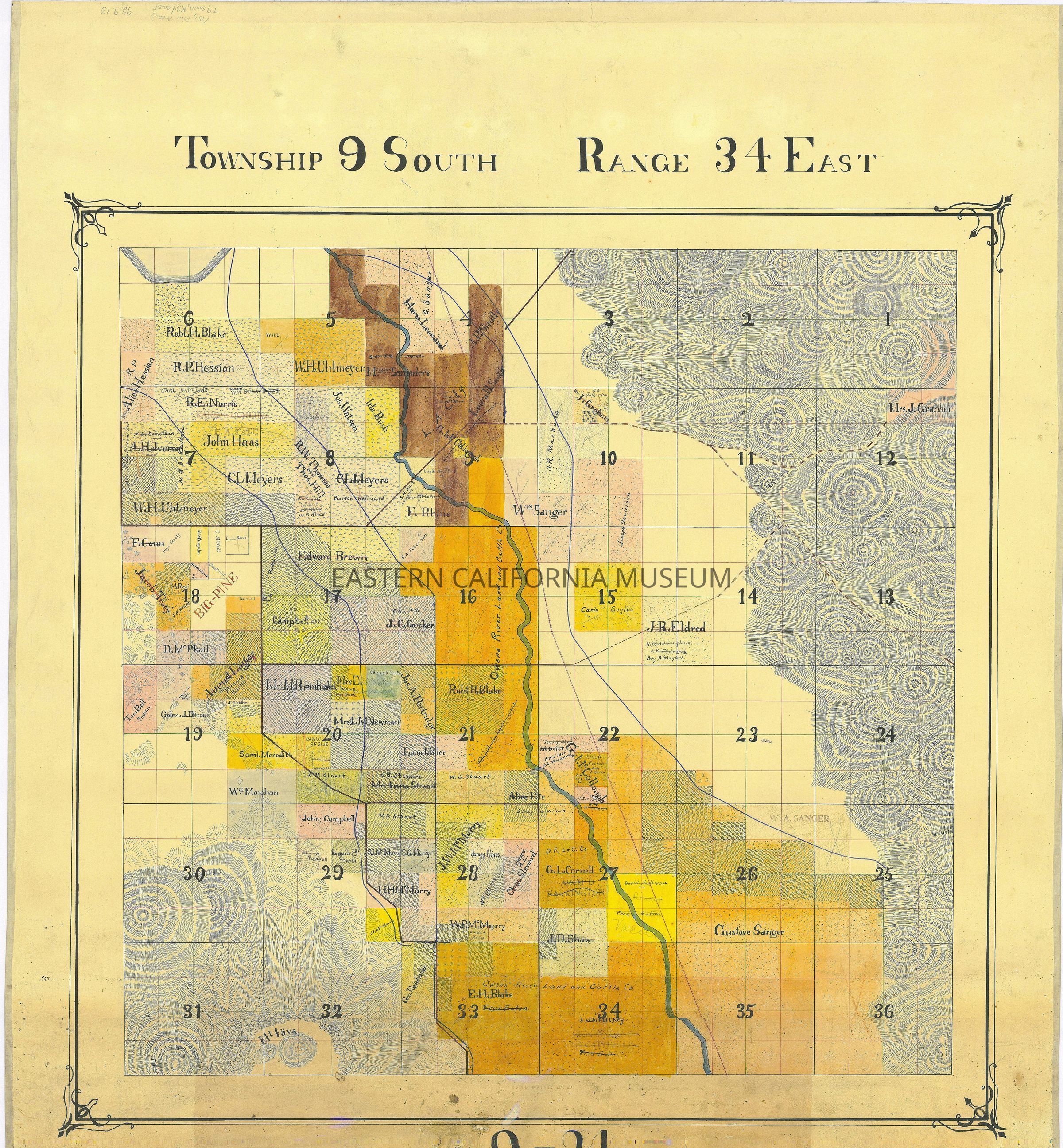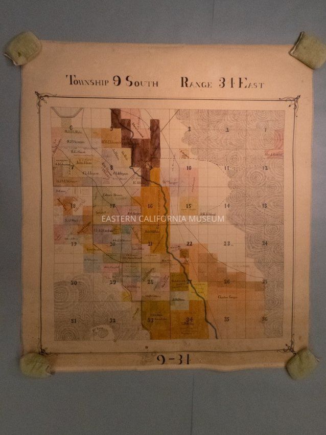 Plat map showing land ownership in the Big Pine area circa 1900s-1920s. Township 9 South, Range 34 East.