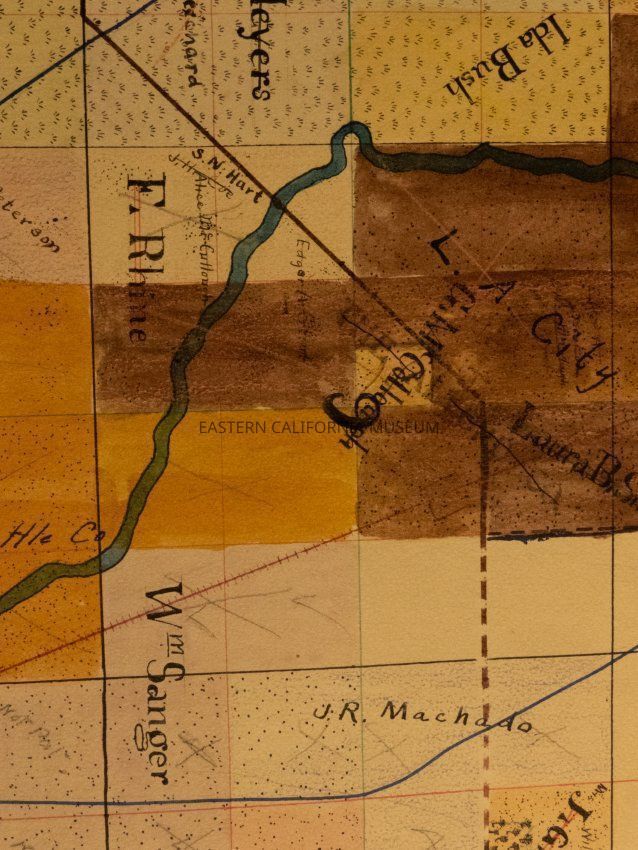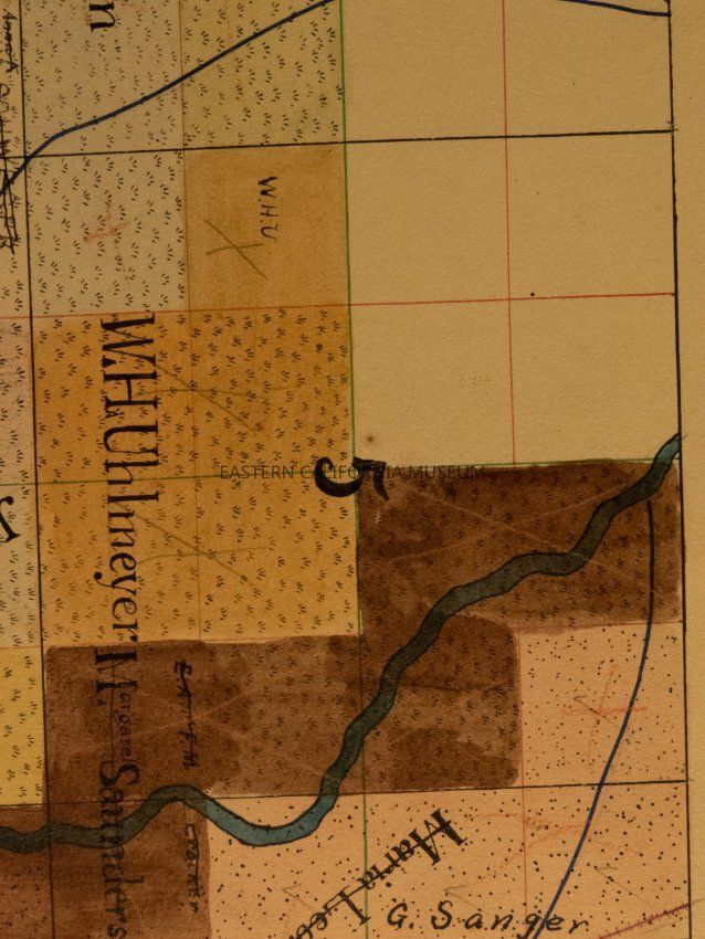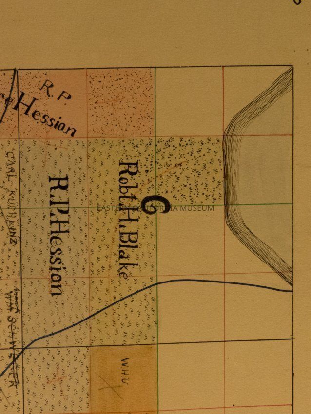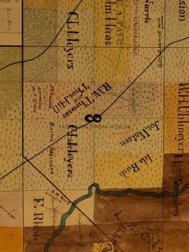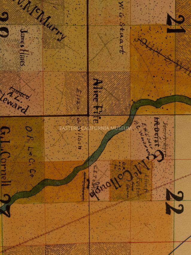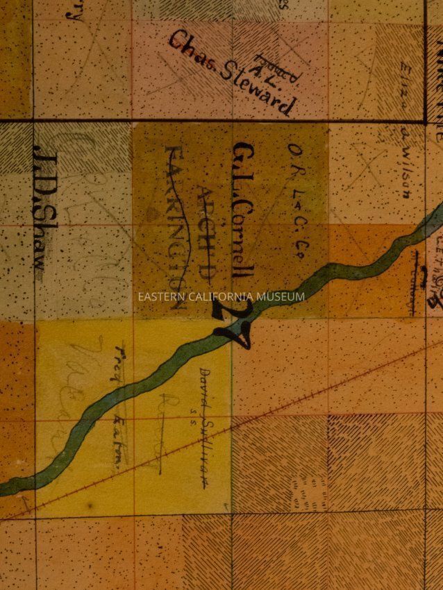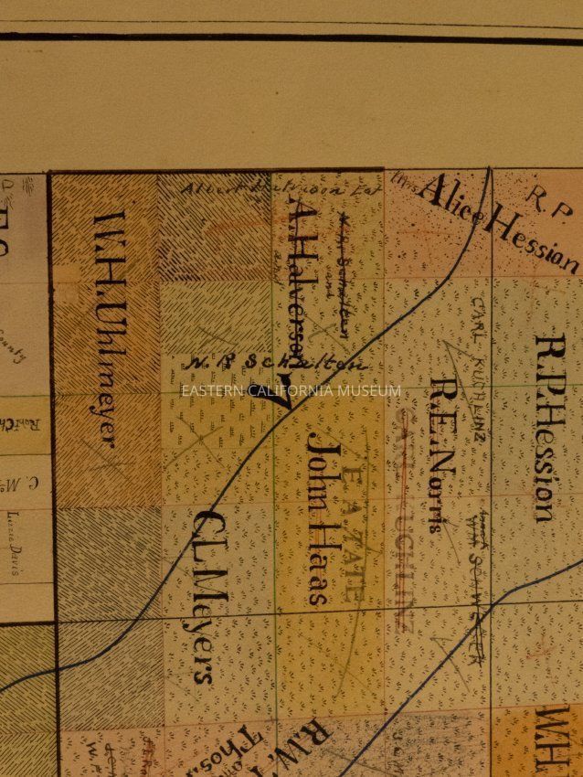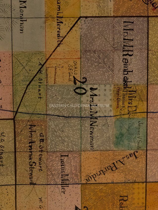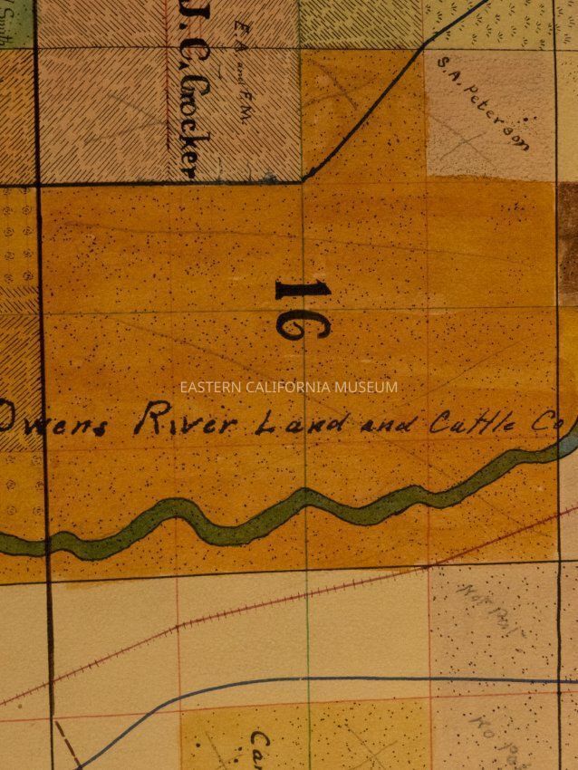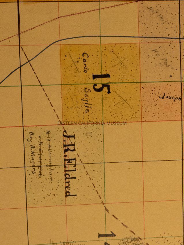 Plat map showing land ownership in the Big Pine area circa 1900s-1920s. Township 9 South, Range 34 East.