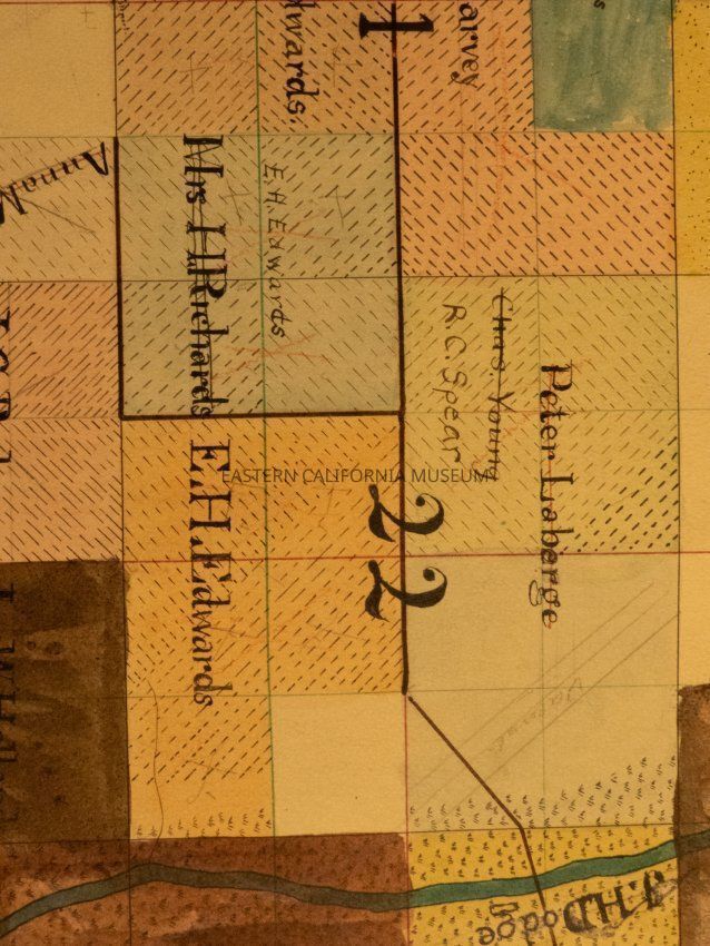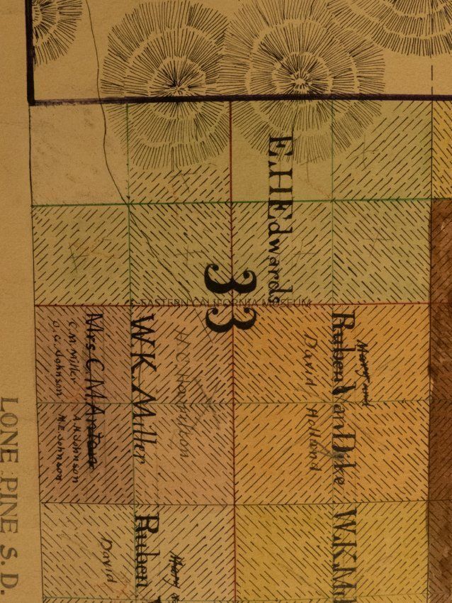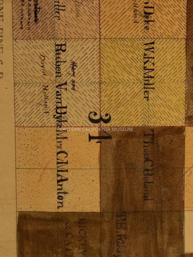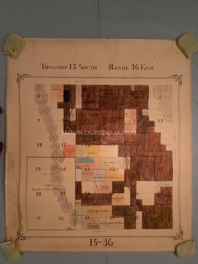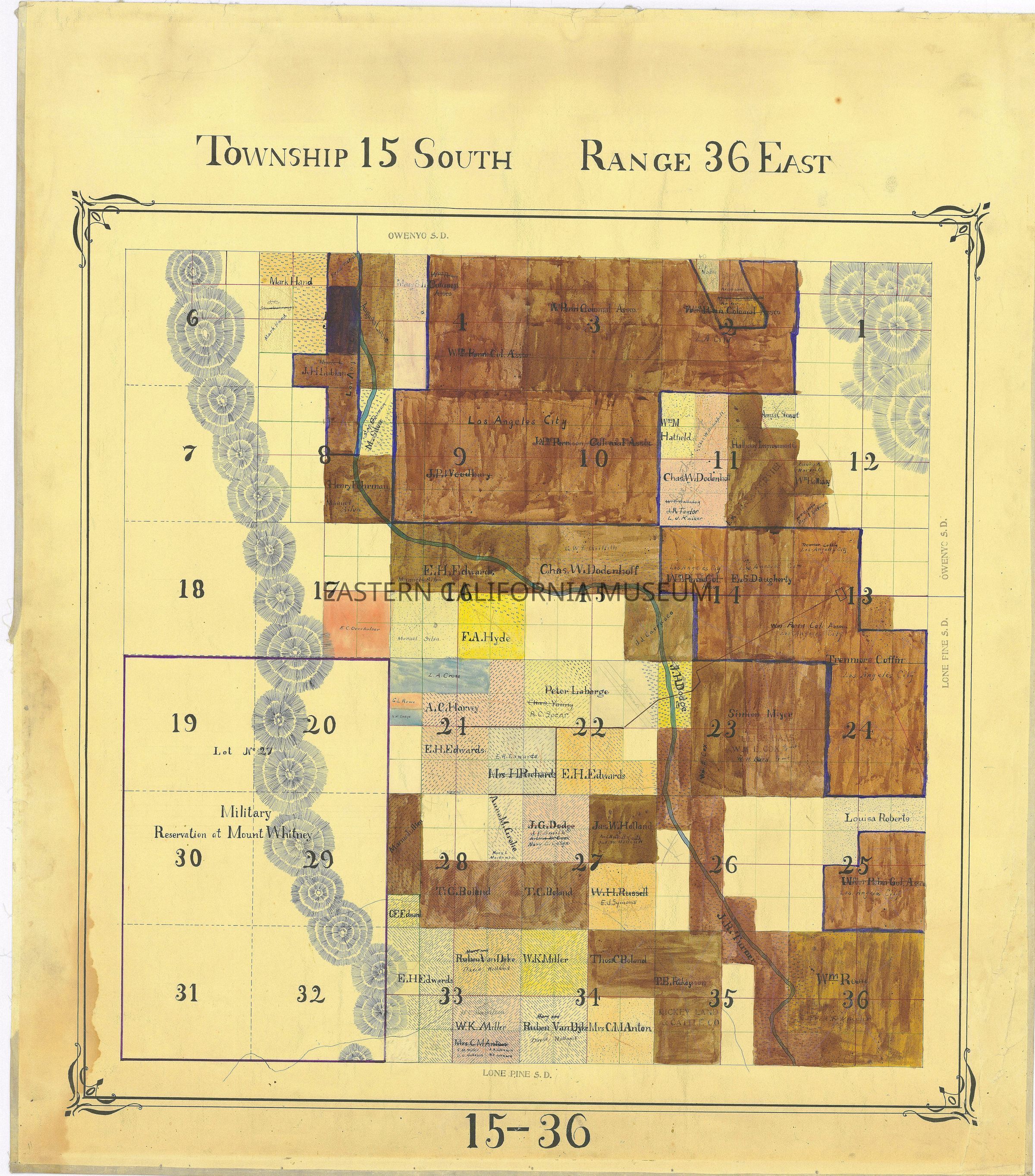Plat map showing land ownership in the Lone Pine area circa 1900s-1920s. Township 15 South, Range 36 East.