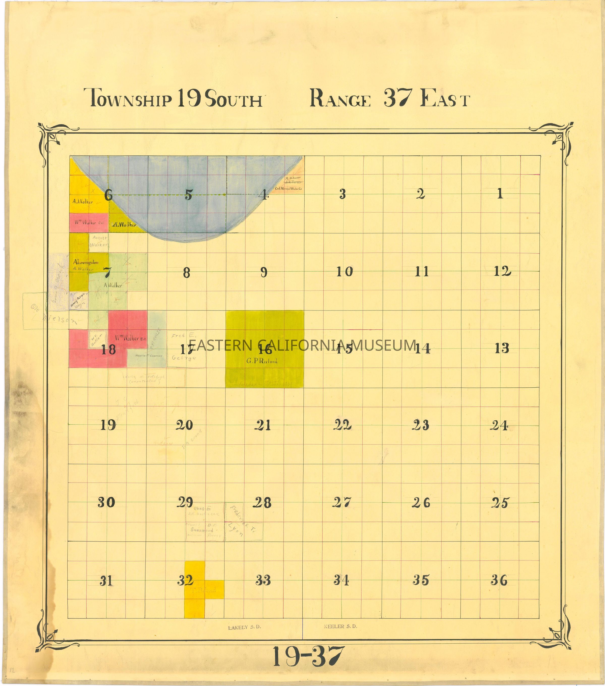 Plat map showing land ownership circa 1900s-1920s. Township 19 South, Range 37 East.