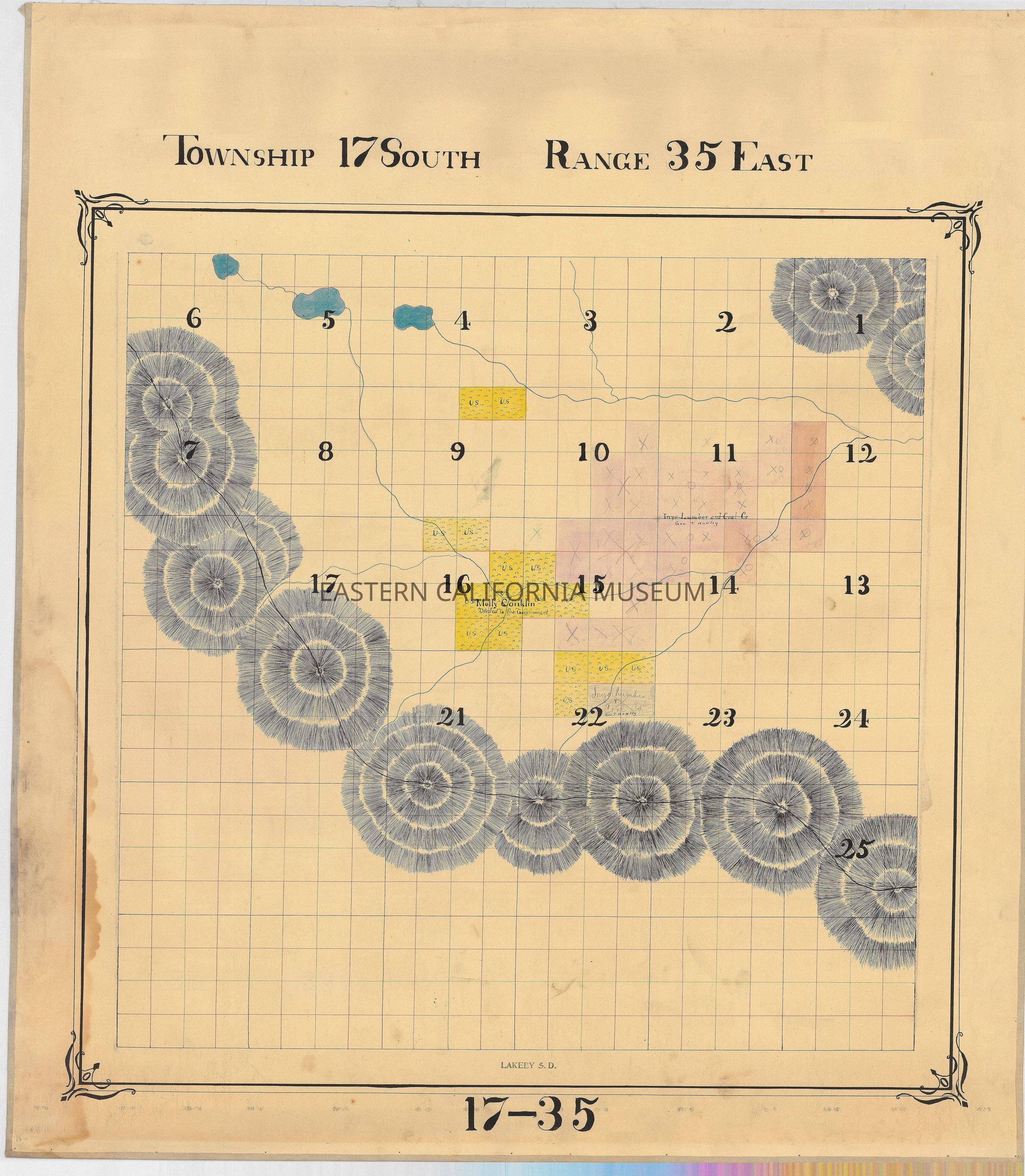 Plat map showing land ownership circa 1900s-1920s. Township 17 south, Range 35 East.