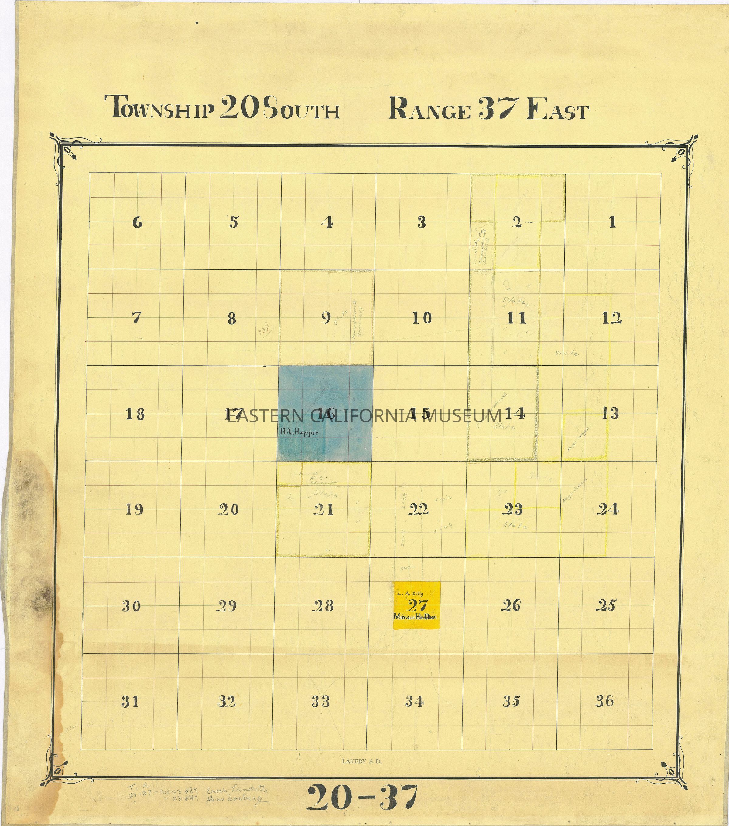 Plat map showing land ownership circa 1900s-1920s. Township 20 South, Range 37 East.