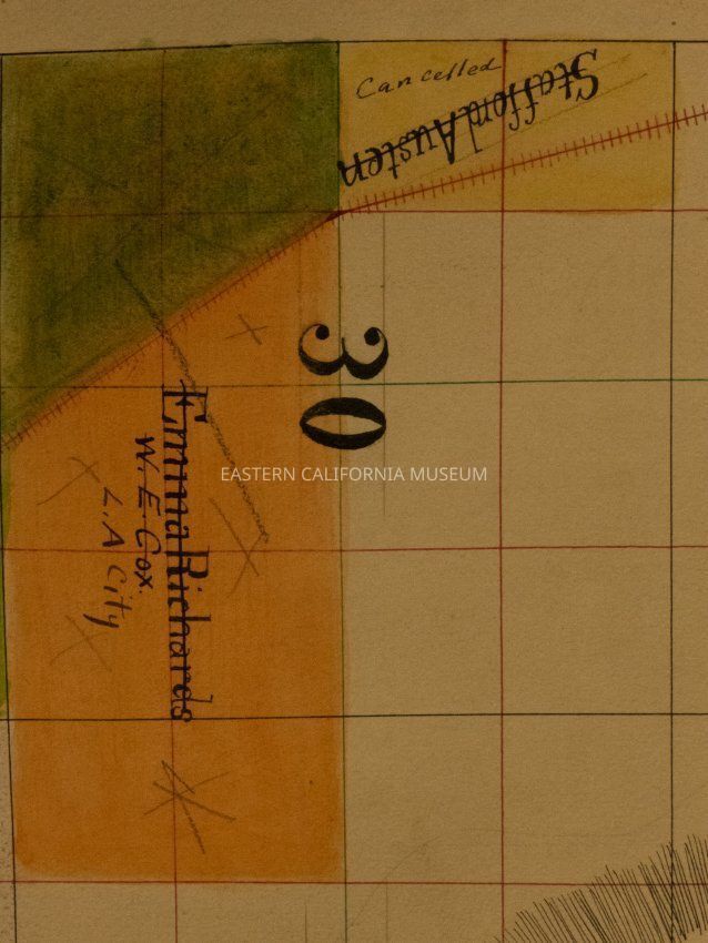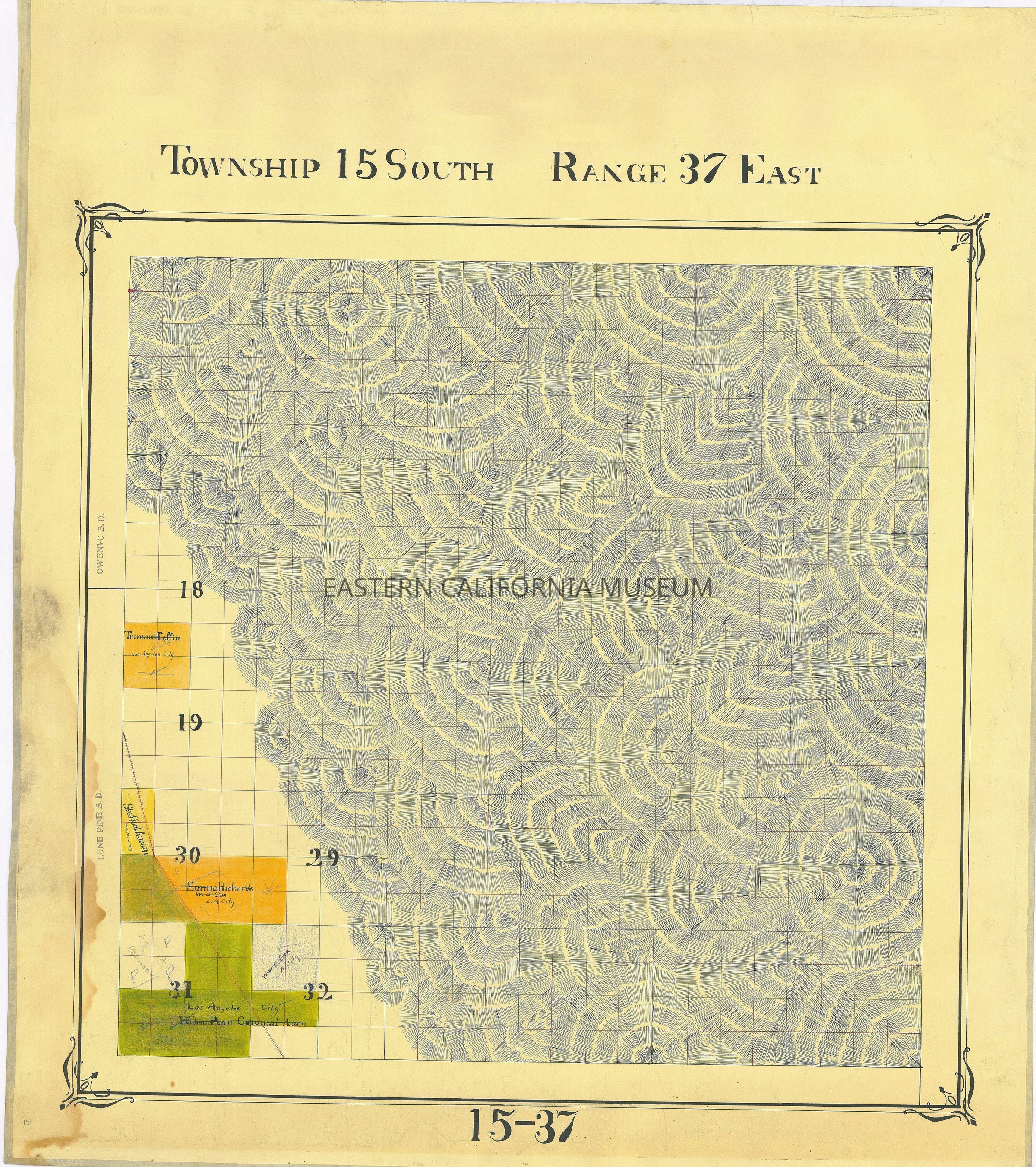 Plat map showing land ownership in the Lone Pine area circa 1900s-1920s. Township 15 South, Range 37 East.