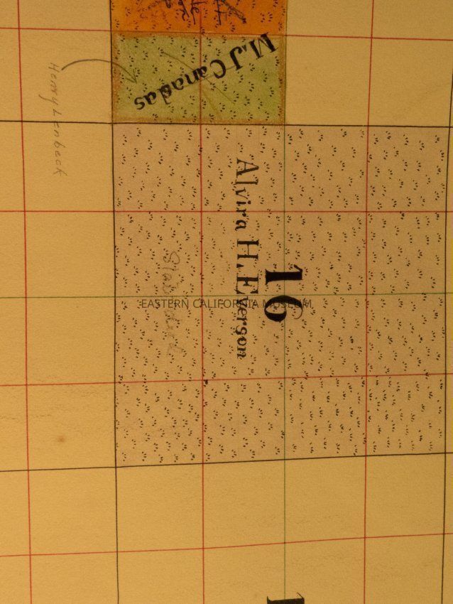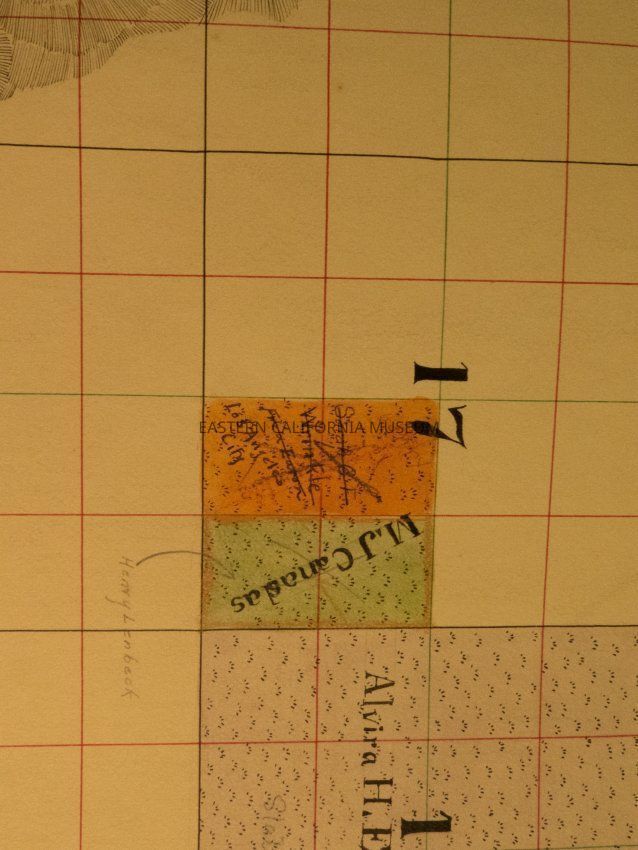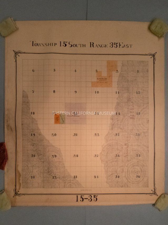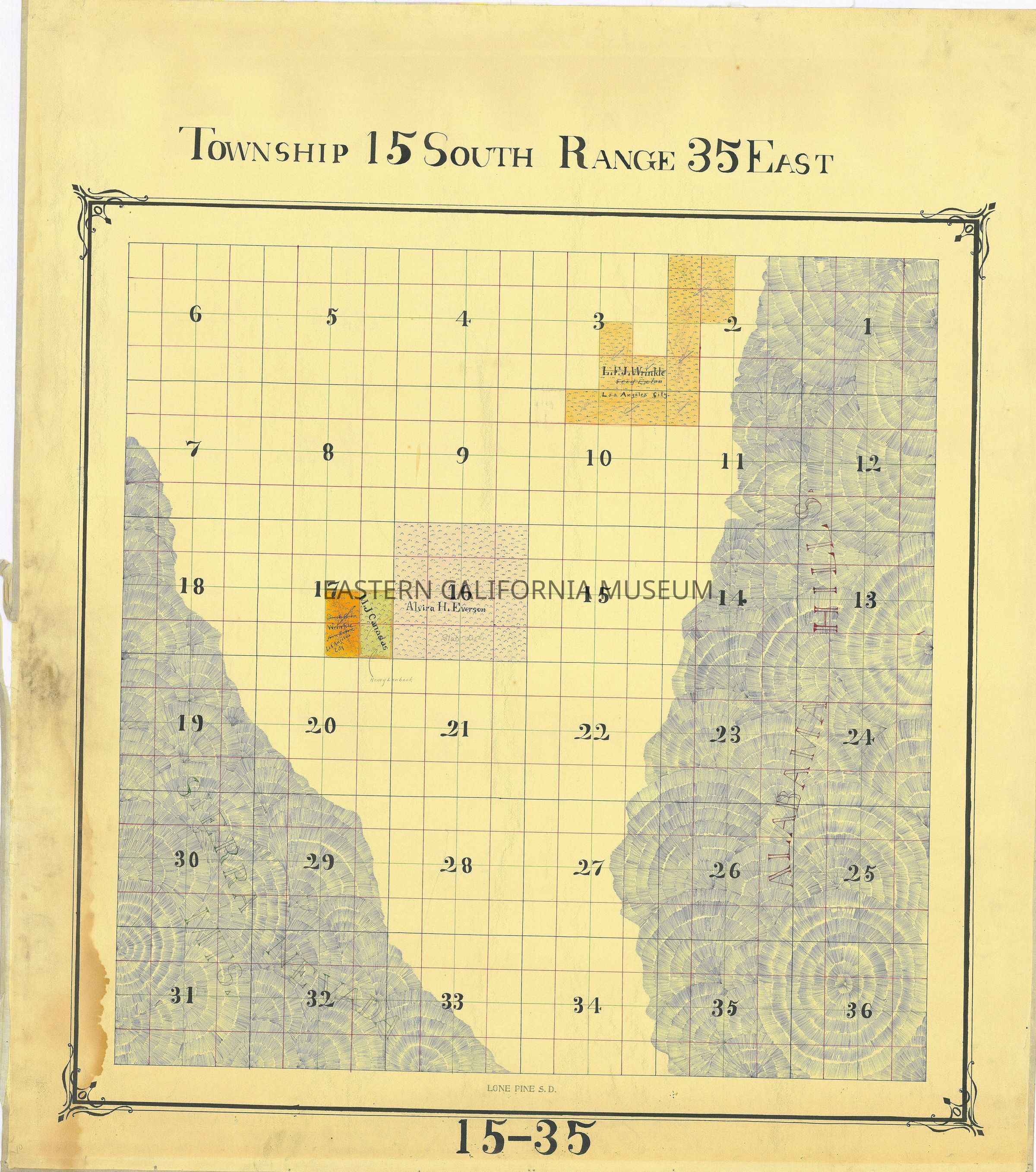 Plat map showing land ownership in the Lone Pine area circa 1900s-1920s. Township 15 South, Range 35 East.