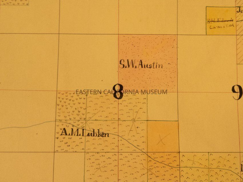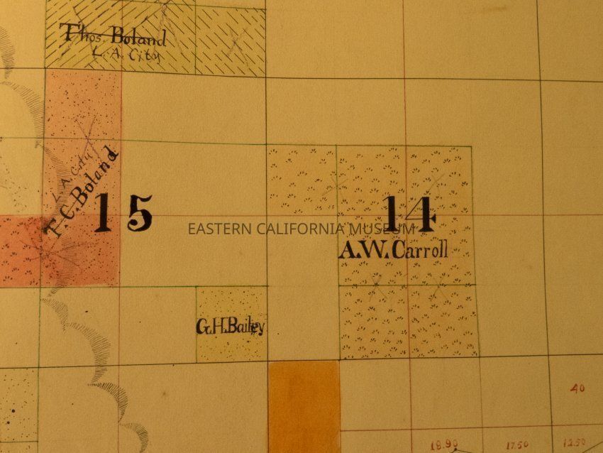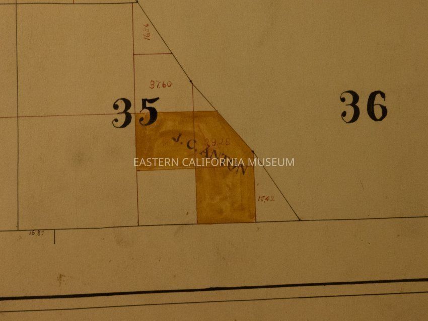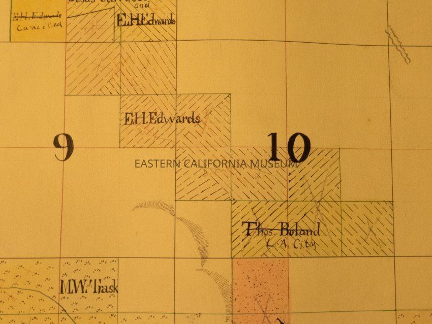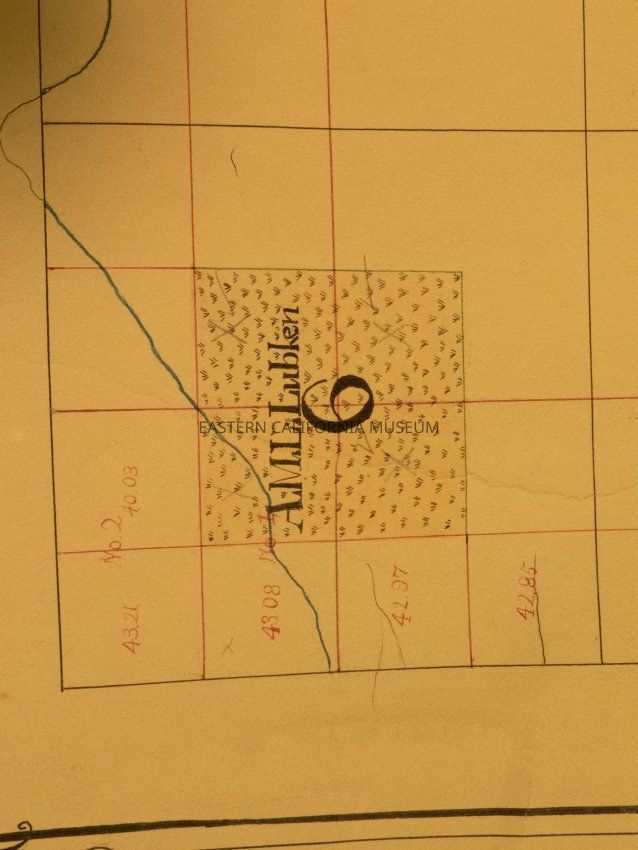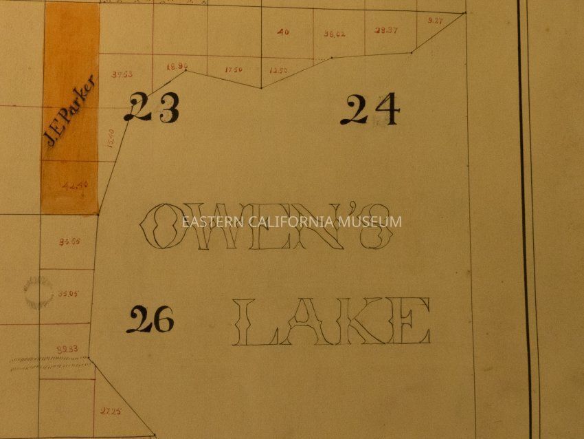Plat map showing land ownership in the Lone Pine area circa 1900s-1920s. Township 16 South, Range 36 East.