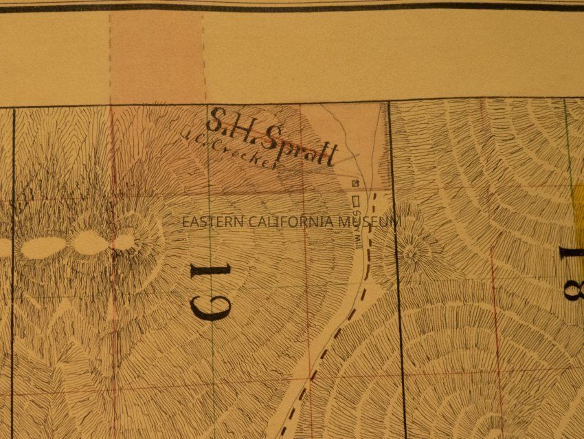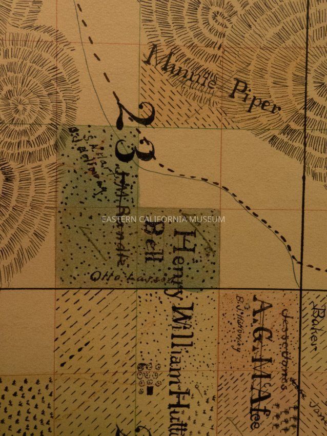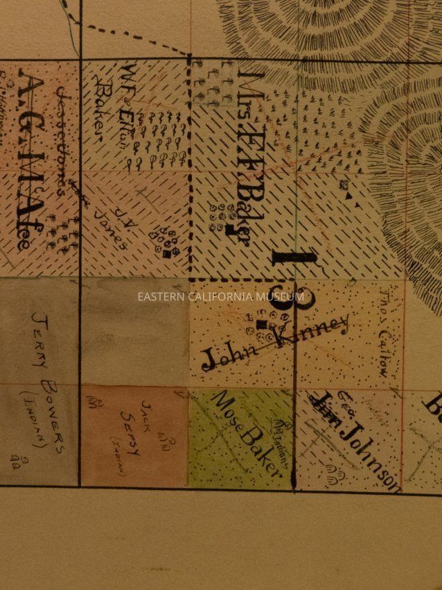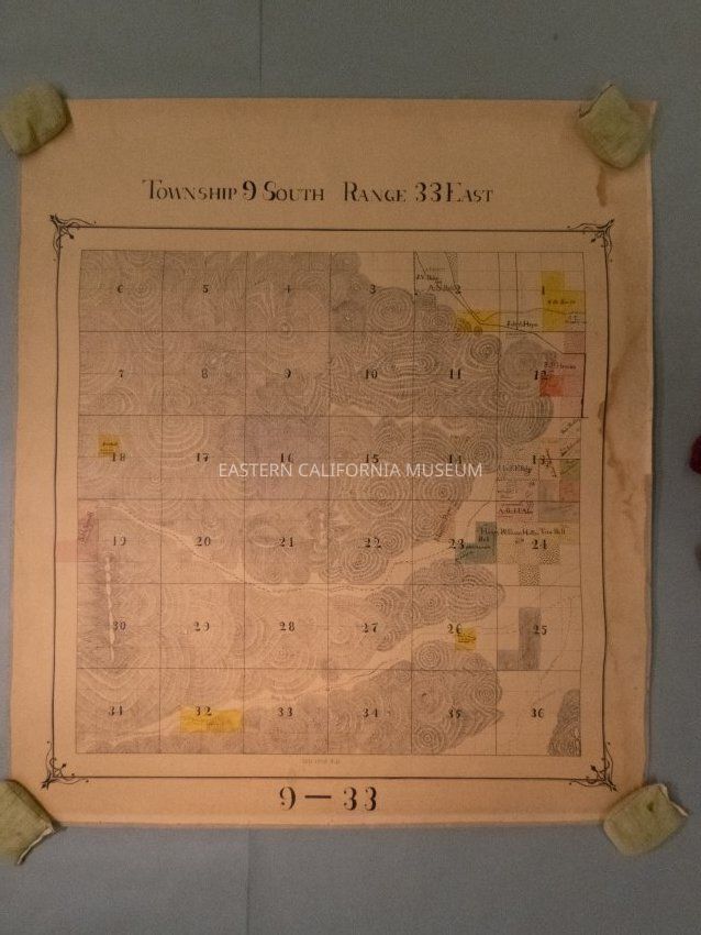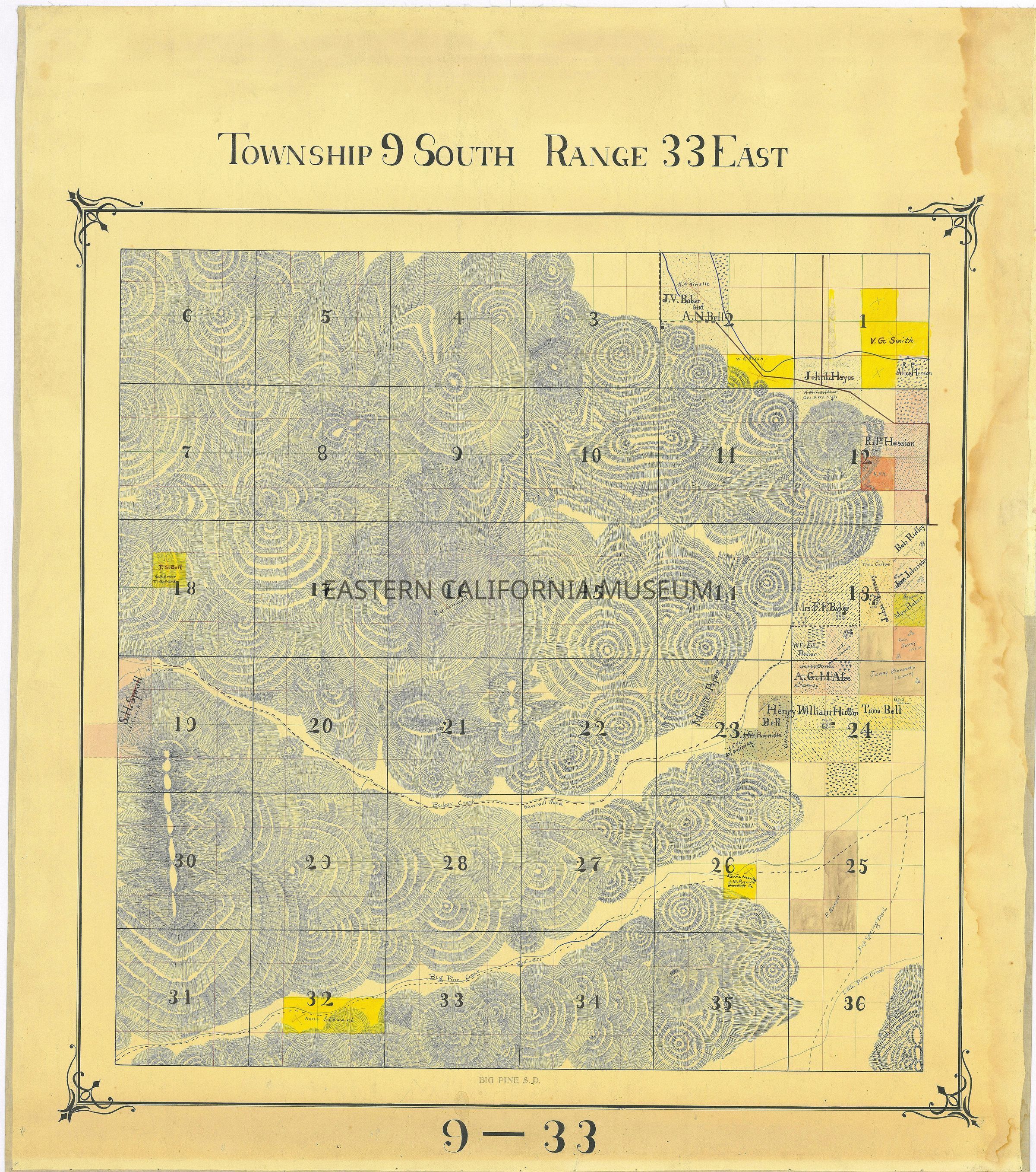 Plat map showing land ownership in the Big Pine area circa 1900s-1920s. Township 9 South, Range 33 East.