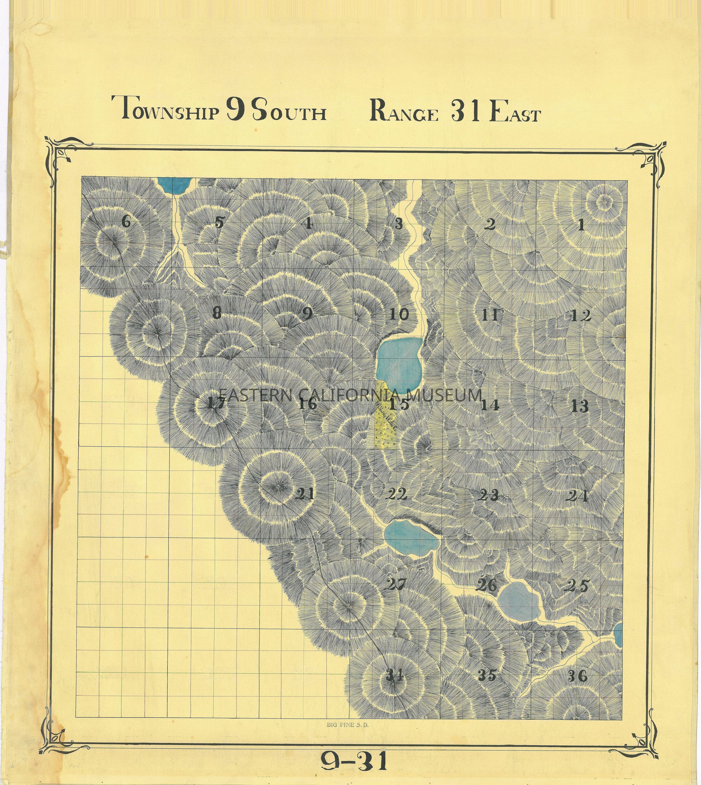 Plat map showing land ownership in the Big Pine area circa 1900s-1920s. Township 9 South, Range 31 East.