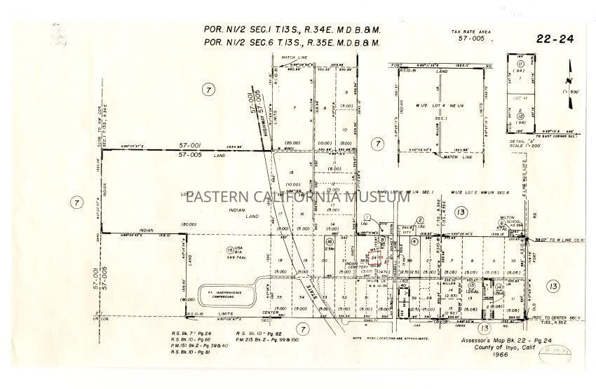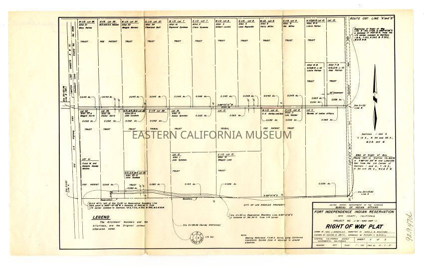 Plats of sections of Fort Independence Indian Reservation showing land ownership, c. 1960s-1970s.