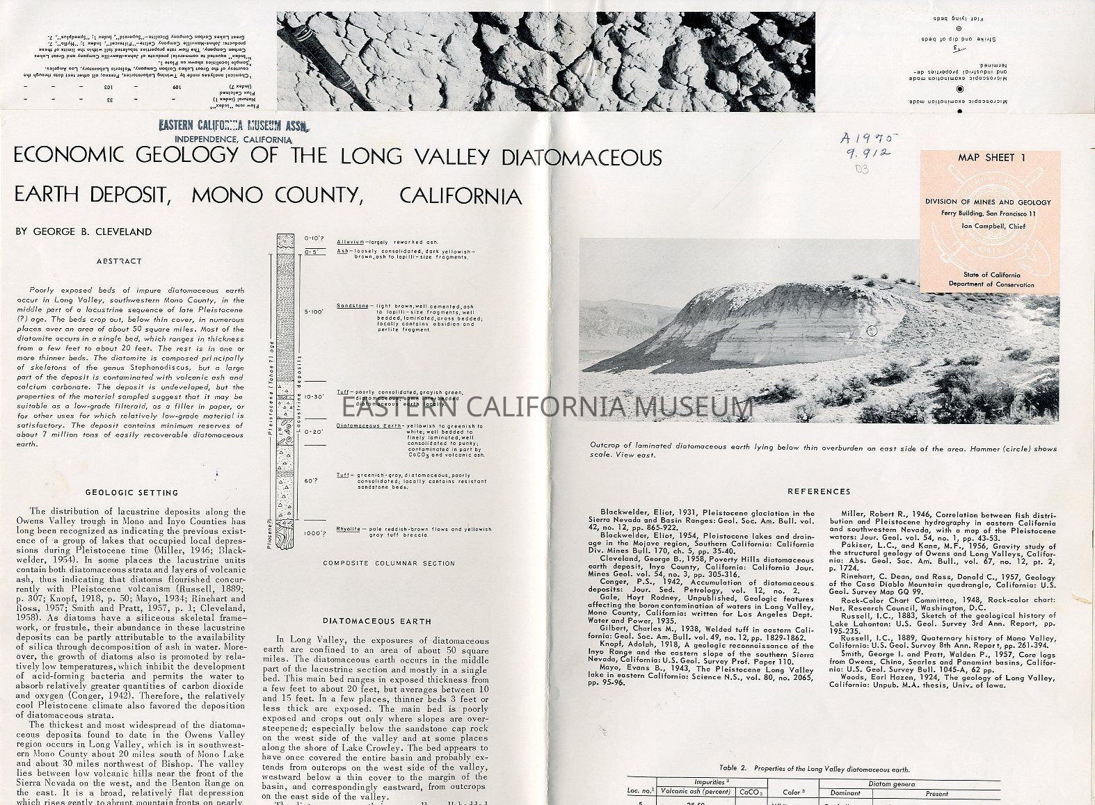 "Economic Geology of the Long Valley Diatomaceous Earth Deposit, Mono County California," By George B. Cleveland, Division of Mines and Geology, 1961.
