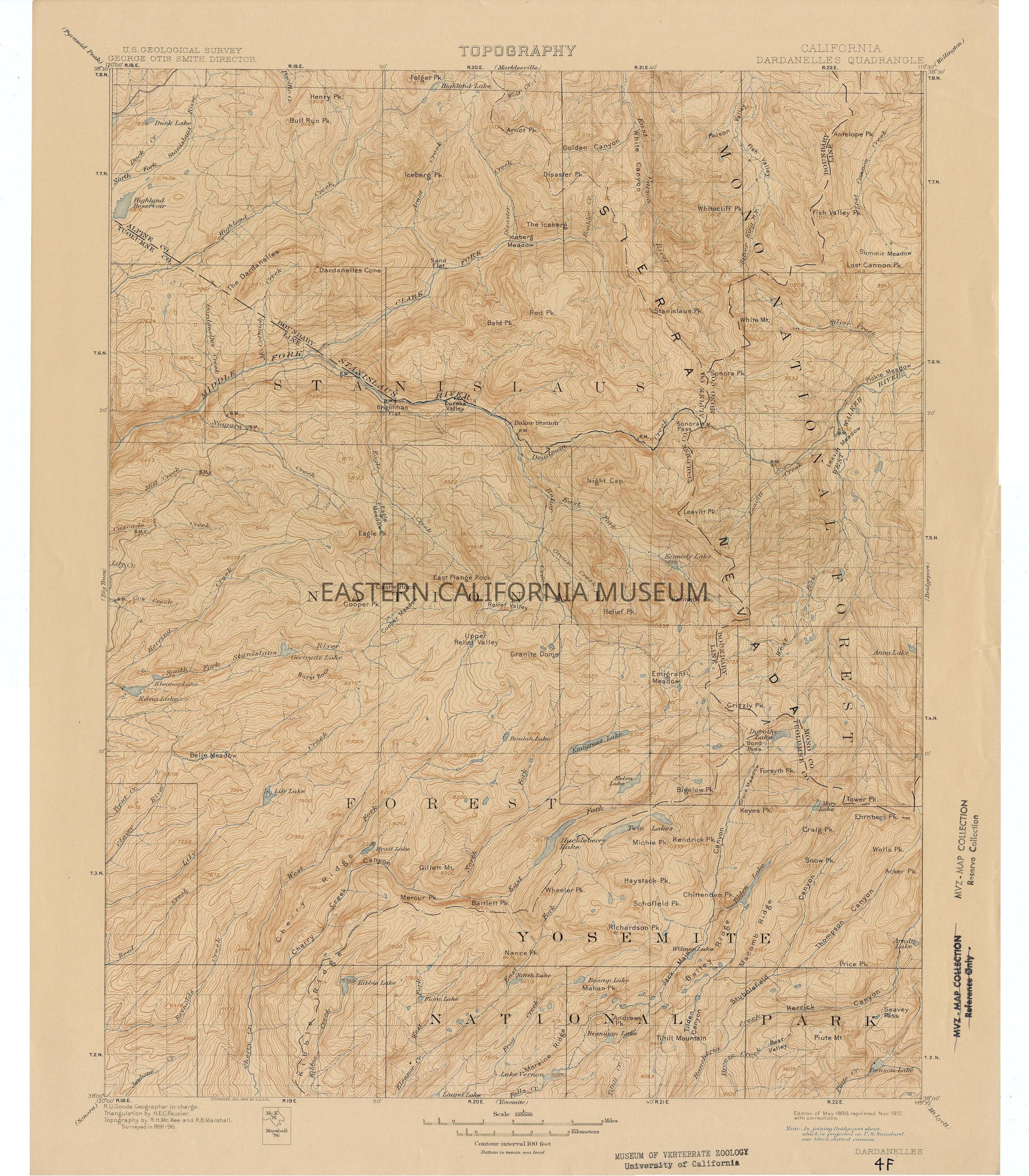 Topographic map: California Dardanelles Quadrangle, U.S. Geological Survey, edition of May 1898, reprinted Nov. 1912 with corrections.