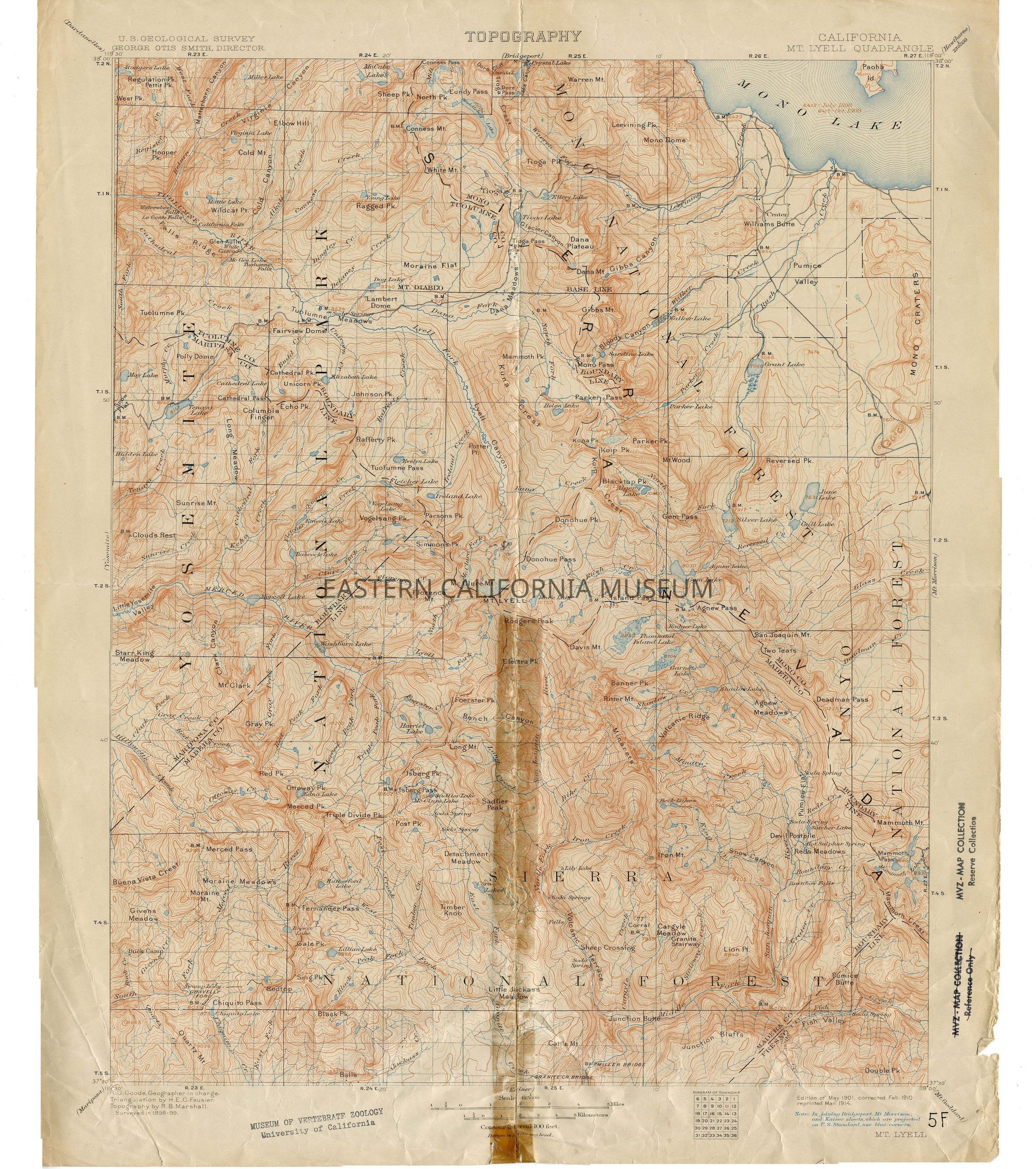 Topographic map: California Mt. Lyell Quadrangle, U.S. Geological Survey, edition of May 1901, corrected Feb. 1910, reprinted Mar. 1914.