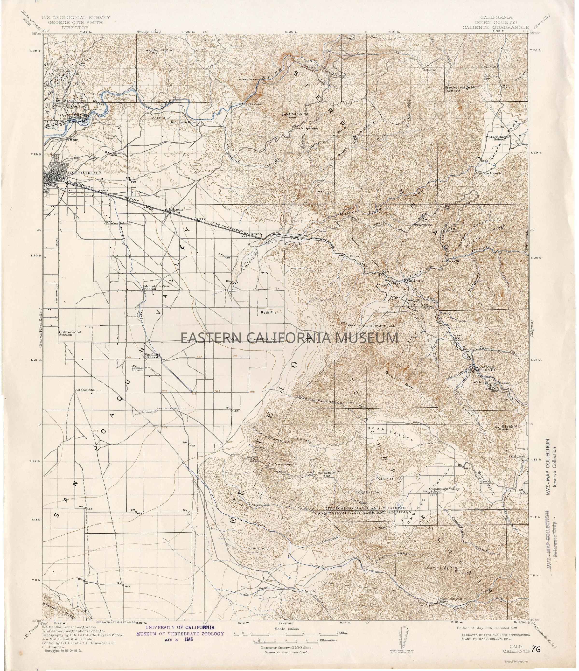 Topographic map: California (Kern County) Caliente Quadrangle, U.S. Geological Survey, edition of May 1914, reprinted [crossed out 1929] by 29th Engineer Reproduction Plant, Portland, Oregon, 1942.