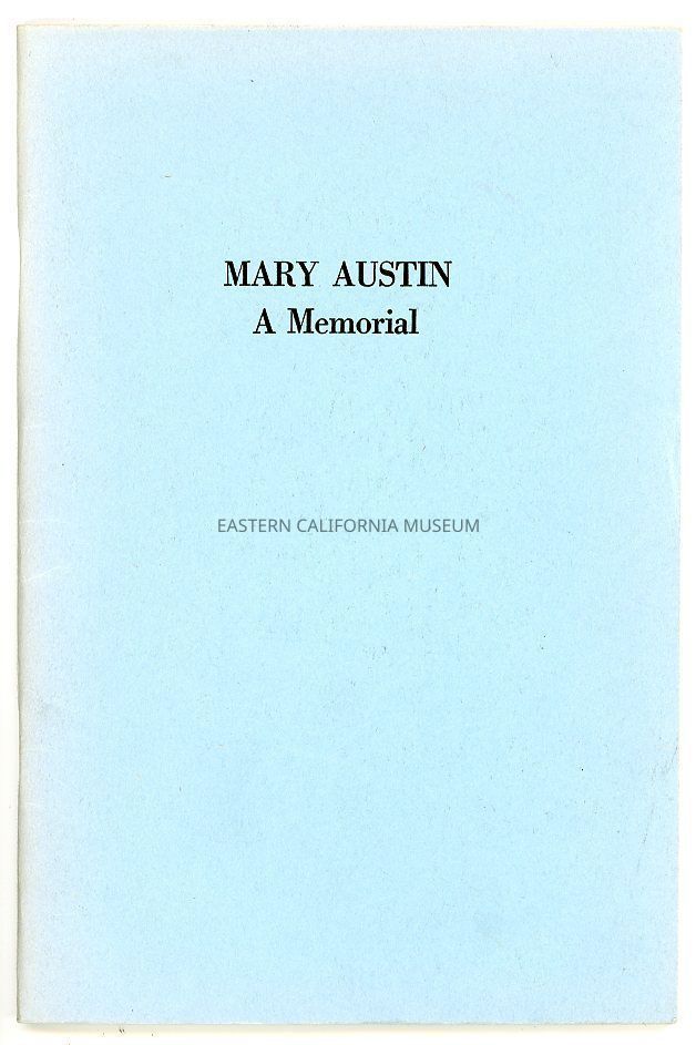 "Mary Austin: A Memorial" is a booklet that was edited by Willard Hougland, and published by the Laboratory of Anthropology in Santa Fe, NM in September 1944. It is one of 1,000 copies printed at the Santa Fe Press in Santa Fe, NM.Book Details